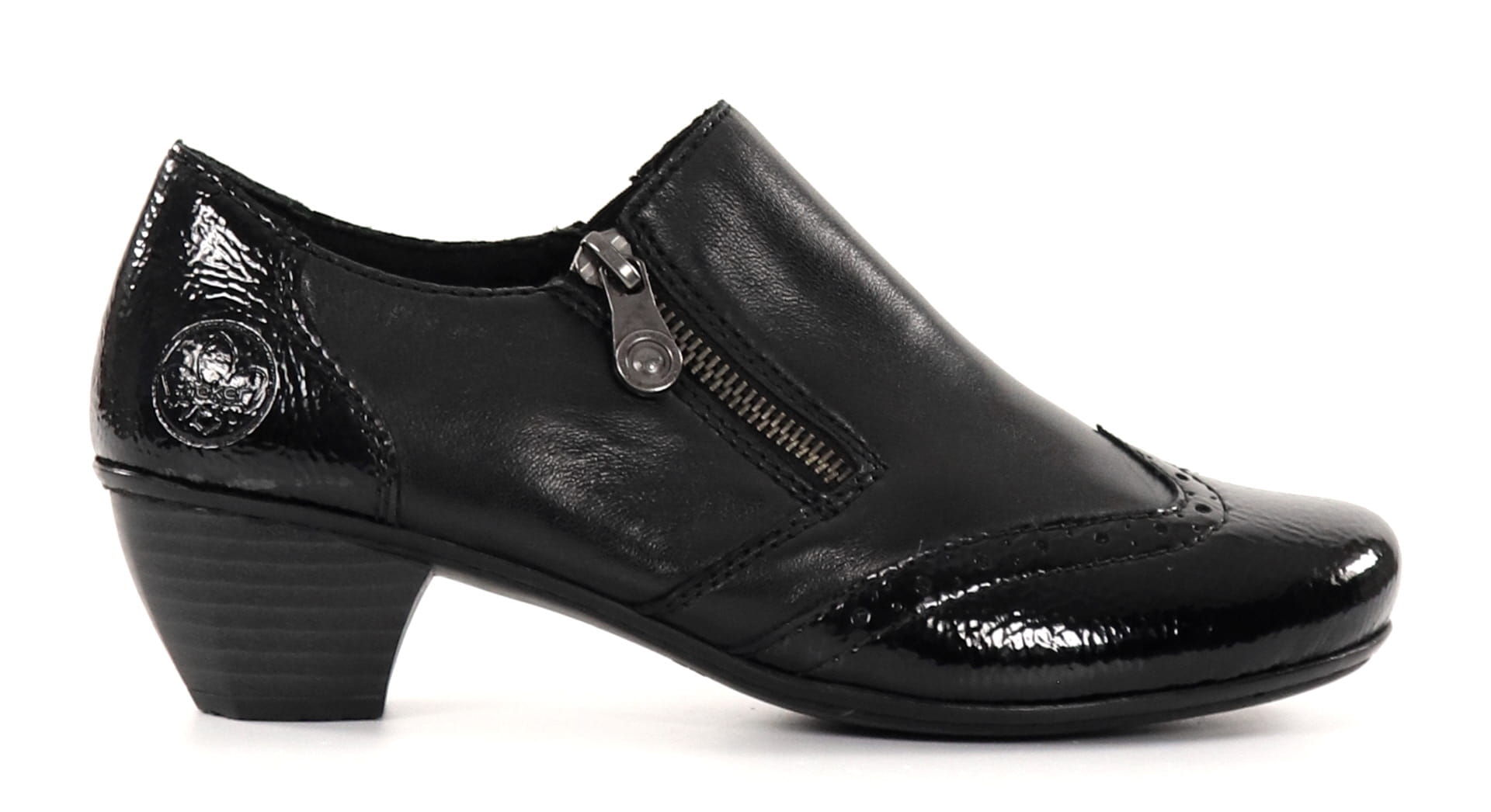 En vacker Rieker promenadsko med liten klack. Det här är en av perennfavoriterna i Riekers utbud, då den passar lika bra till vardags som till festligare tillfällen!