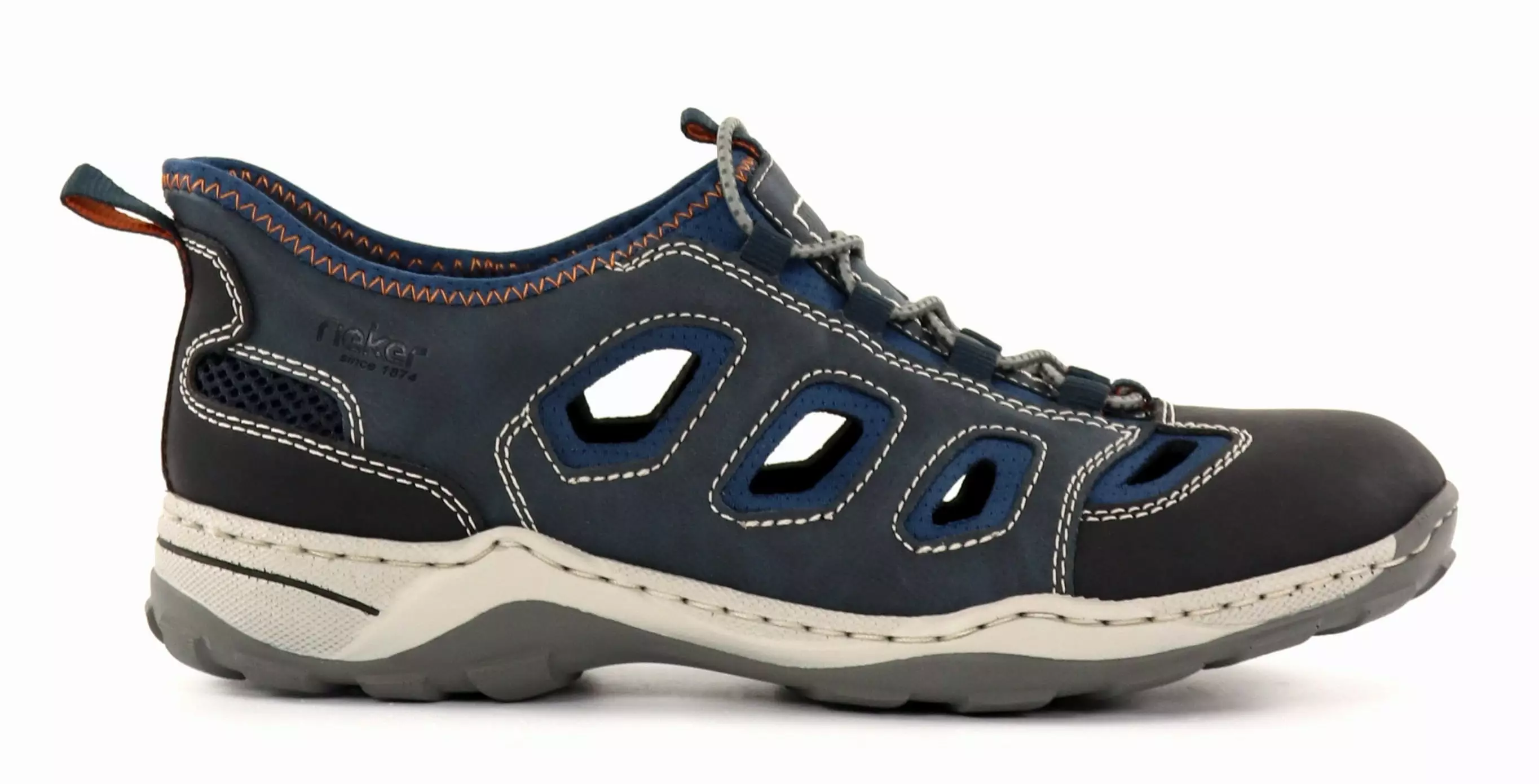 Riekers praktiska promenadskor med READY2GO hälkonstruktion som gör att du enkelt kan ta på dig skorna utan skohorn! Den perforerade ovandelen gör att skorna andas och de elastiska snören säkerställer en perfekt passform utan att knyta snören.
