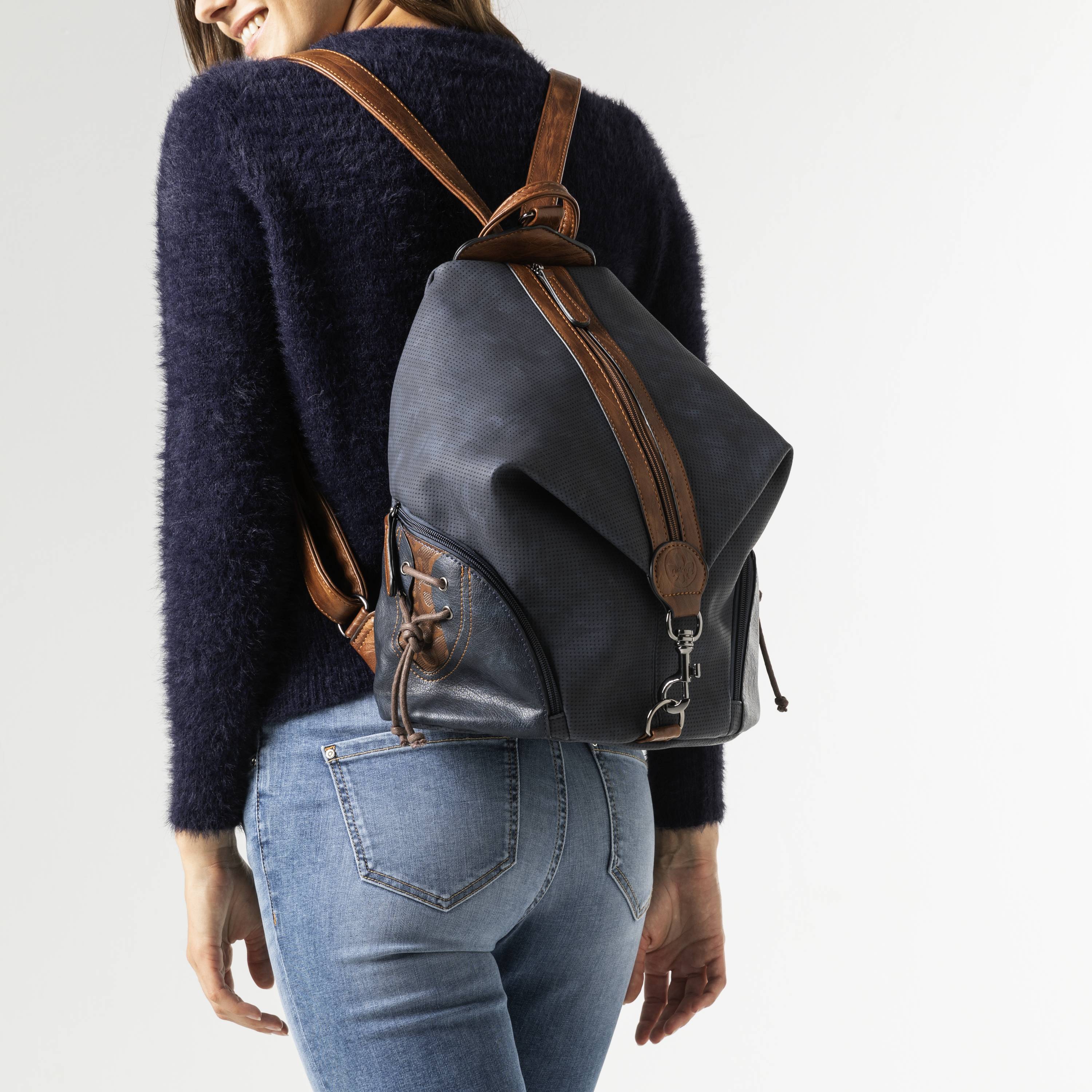 Rymlig ryggsäck i konstmaterial. Justerbara axelremmar.