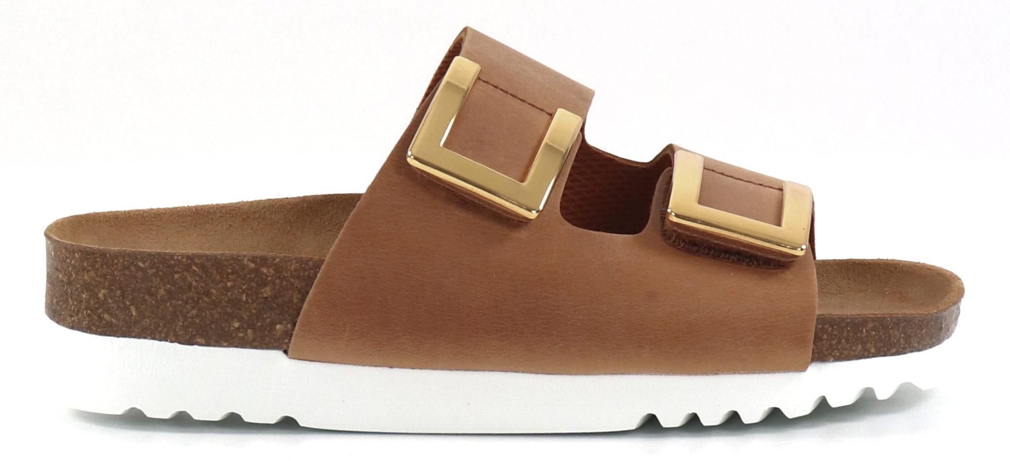 Läder slip-ins formade för att passa foten med kardborreband. Bioprint innersula med bekvämt fotvalv och hälkupa.