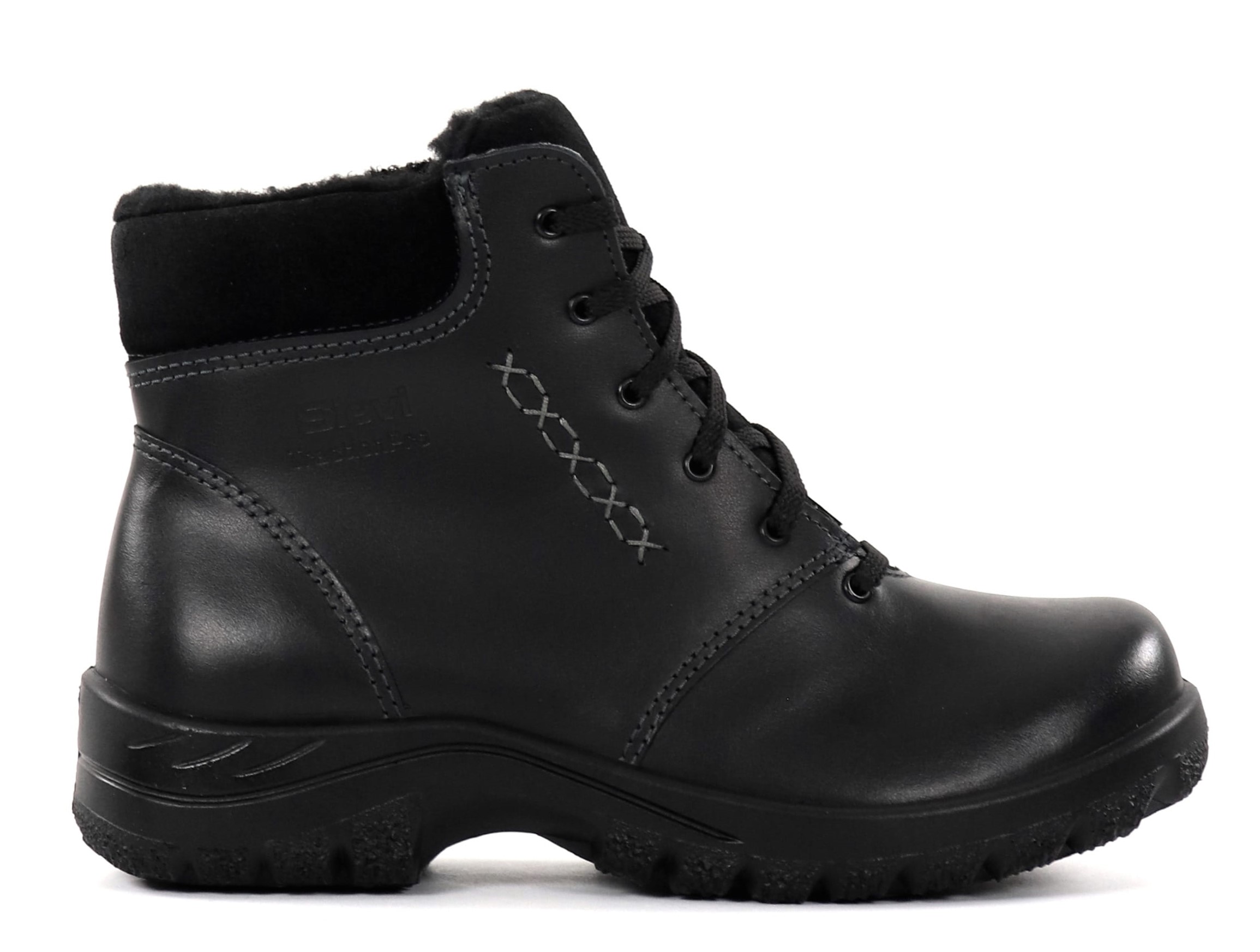 Varma ullfodrade ankelboots i läder med dragkedja och snörning. Bred XL-läst!