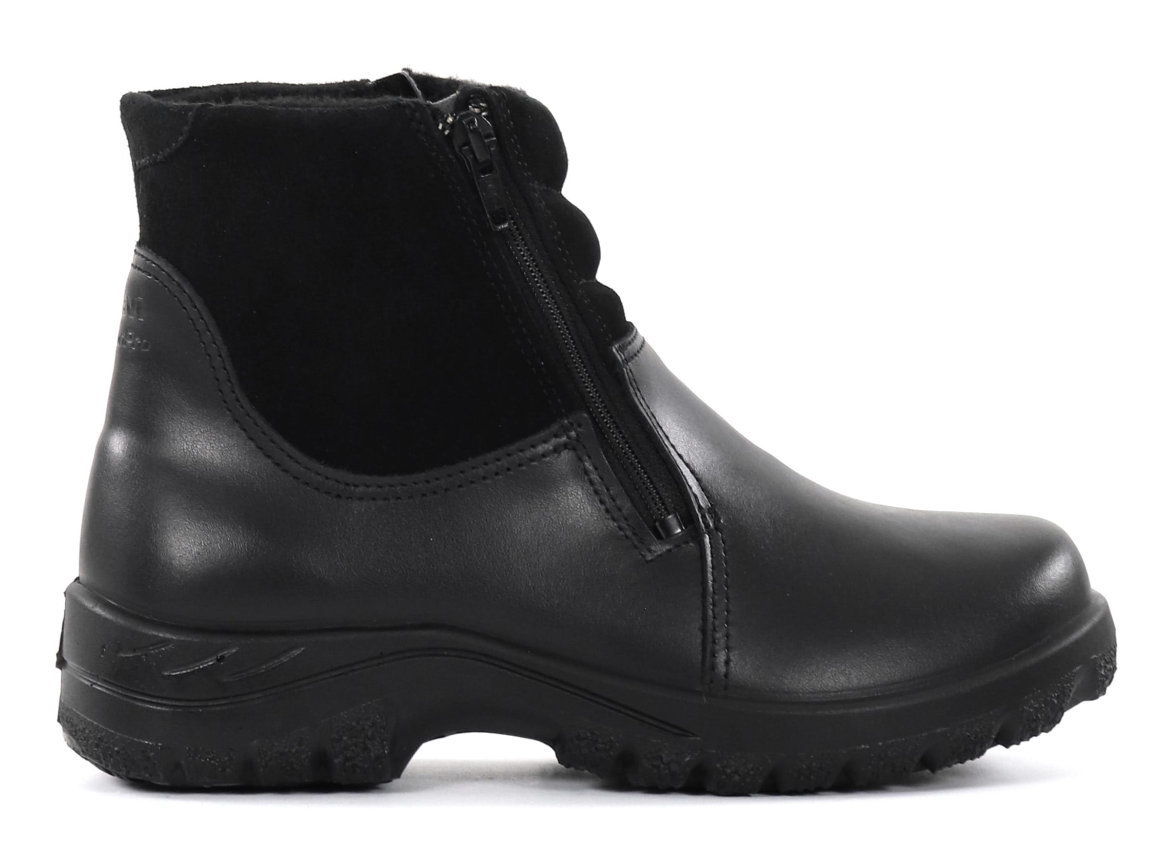 Ankelboots i läder med dragkedjor, greppvänlig friktionssula och varmt filtfoder.