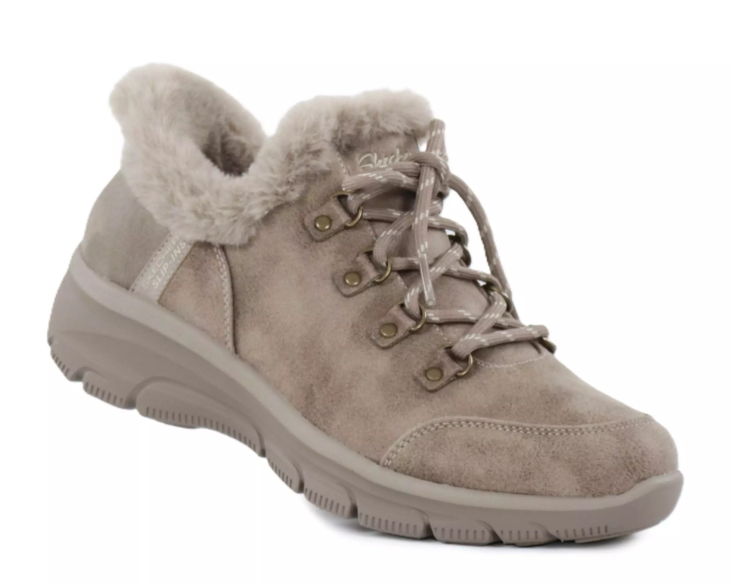 Lättanvända Skechers ankelboots med slip-ins-modell och Heel Pillow-dämpning gör dem enkla att ta på sig. Den vattenavvisande 3M Scotchgard-behandlade ovandelen, det varma fuskpälsfodret och den luftkylda memory foam-innersulan ger komfort och skydd på kalla dagar.