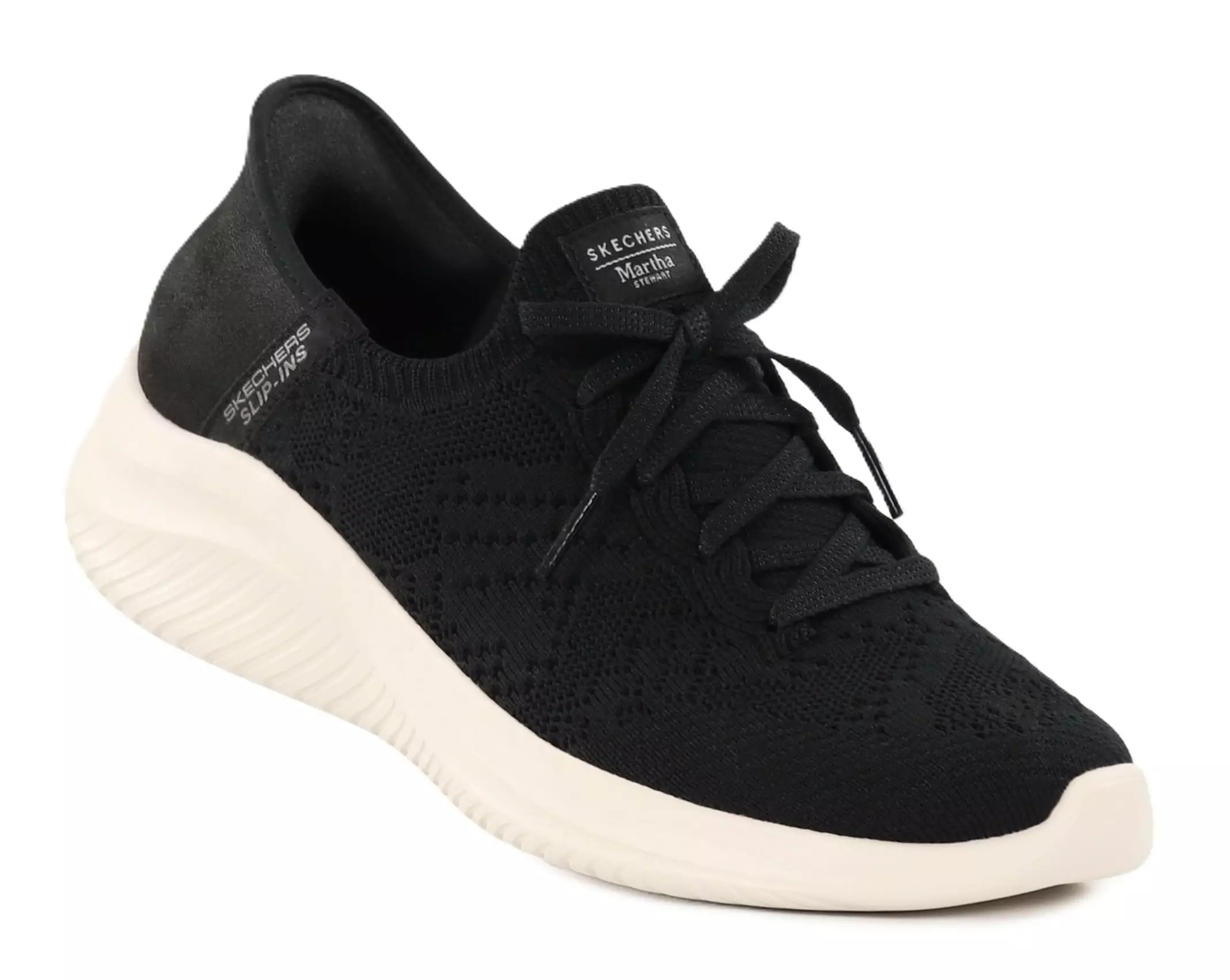 Skechers x Martha Stewart-samarbetet Ultra Flex 3.0 Back On Track-sneakers kombinerar stil och ultimat komfort. Hands Free Slip-ins-designen gör skorna lätta att ta på sig, och den stretchiga stickade ovandelen anpassar sig till foten som en strumpa. Den mjuka Air-Cooled Memory Foam-innersulan ökar komforten och gör skorna bekväma för användning hela dagen.