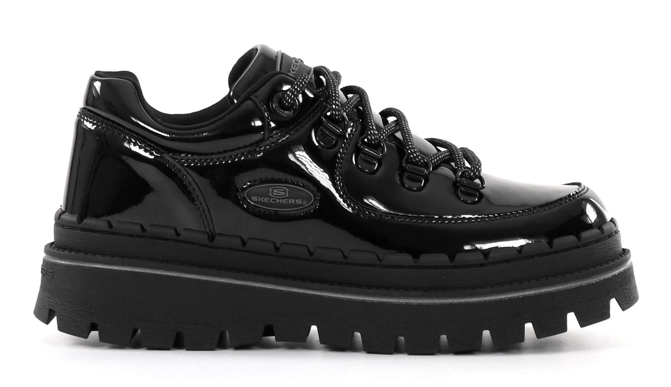 Skechers underbara lack Promenadskor med skosnören. Skorna har en Air-cooled Memory Foam®-komfortinnersula, tack vare vilken de känns riktigt sköna på fötterna och är perfekta för både arbete och fritid.