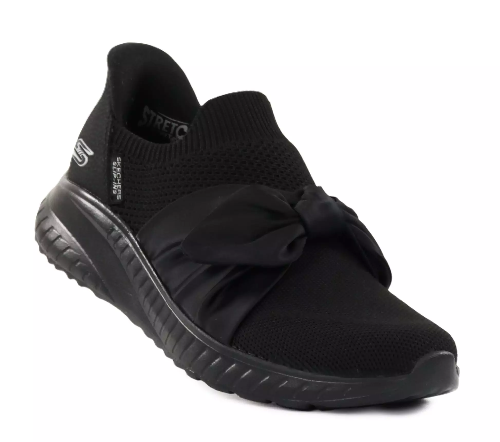 Skechers BOBS Squad Chaos sneakers kombinerar snygg design och perfekt komfort! Den vackra rosettdetaljen ger skon en feminin look, och den lätta att bära Slip-ins modellen gör dem lätta att bära. Trendiga sneakers som passar till både sportiga looker och klänningar!