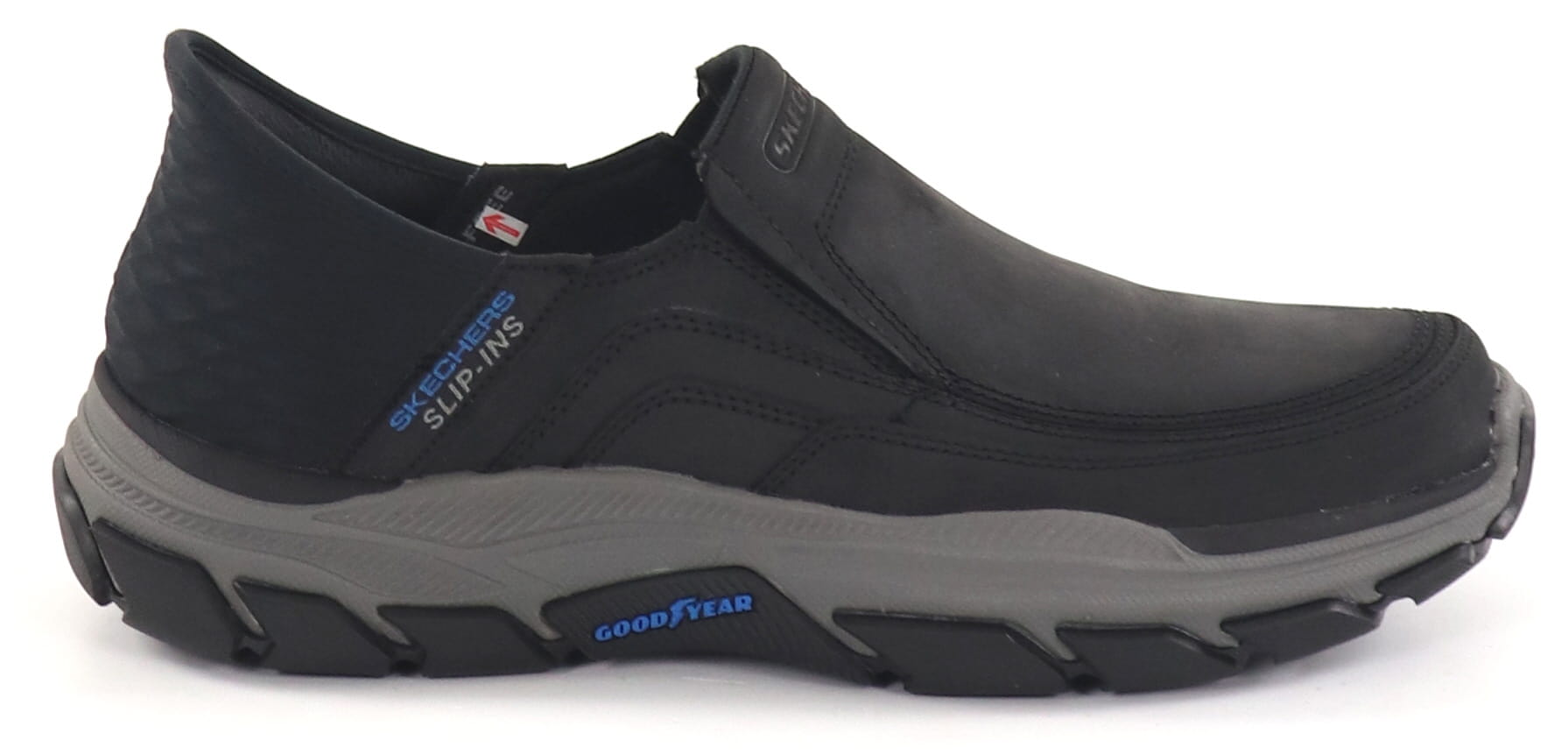 Goodyear yttersula ger bra stabilitet, hållbarhet och komfort för foten! Snygg svart sko med dekorativa sömmar och grå ytterkant. Relaxed Fit-modell som ger extra utrymme för tårna.
