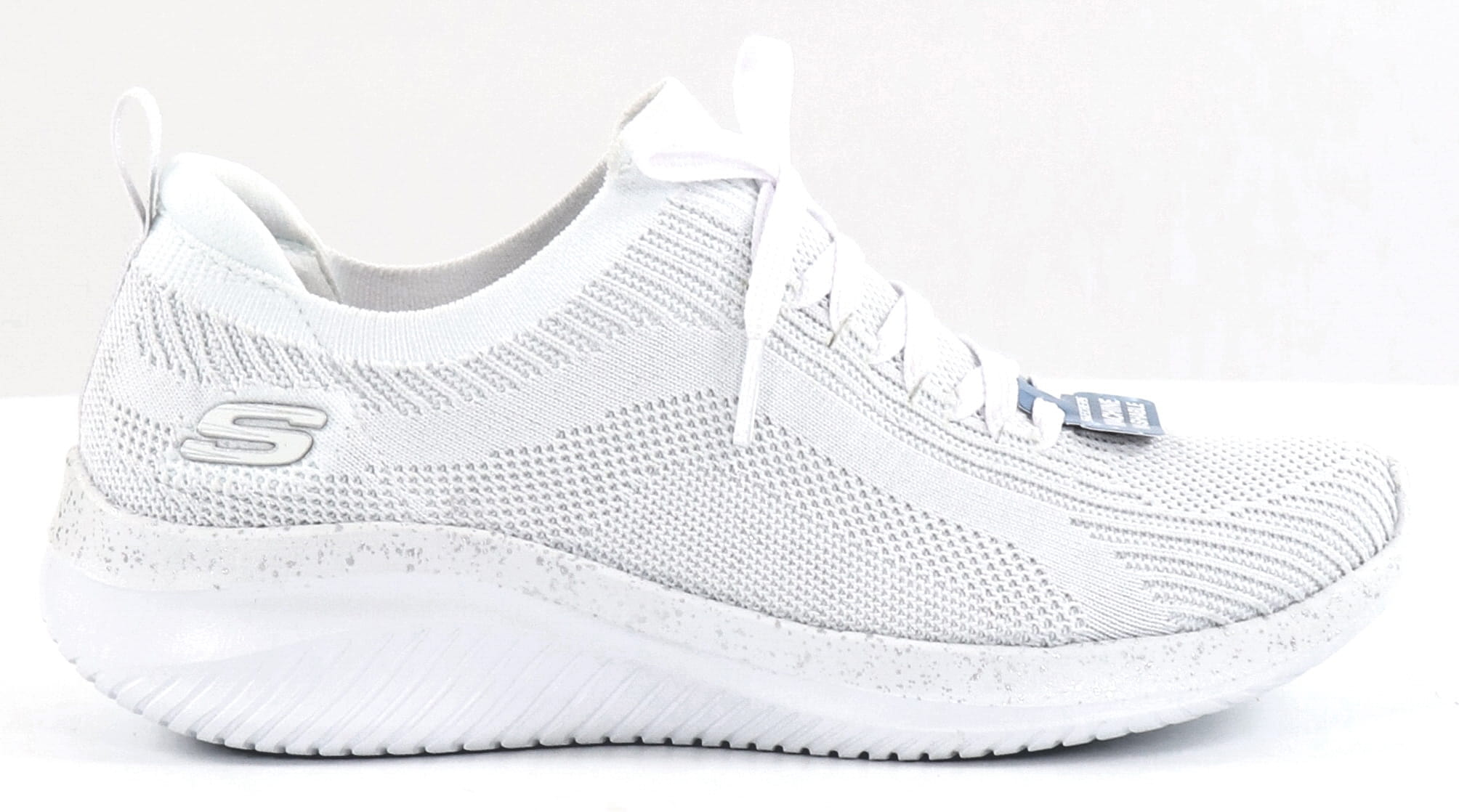 Superbekväma och lätta att ta på, vita Skechers sneakers med silverglitter. Maskintvättbar!