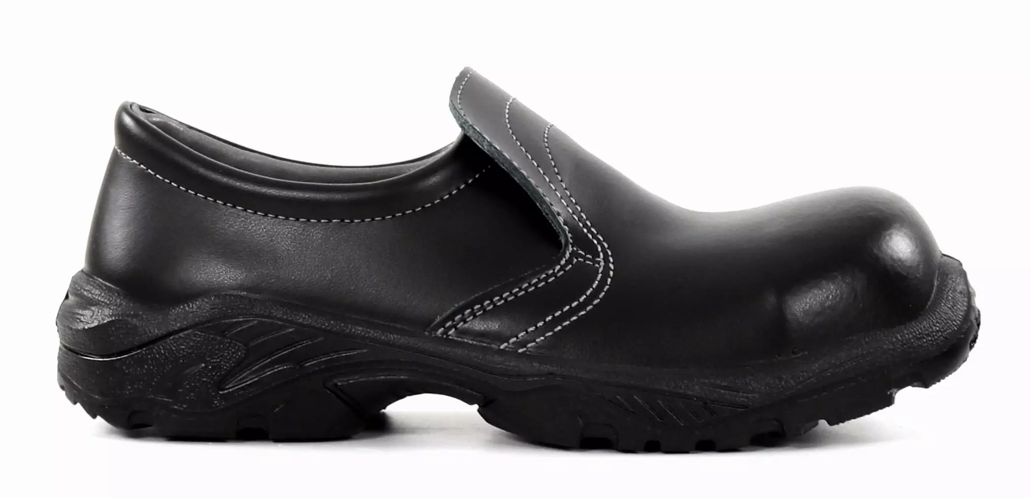 Skyddsskor i läder. Arbetsskor är resistenta mot olja och många kemikalier. Vattenavvisande. Aluminiumtåhätta skyddar tårna från fallande föremål och klämning. ESD-skor laddar ur statisk elektricitet som ackumulerats i kroppen på ett kontrollerat och säkert sätt genom sulstrukturen.