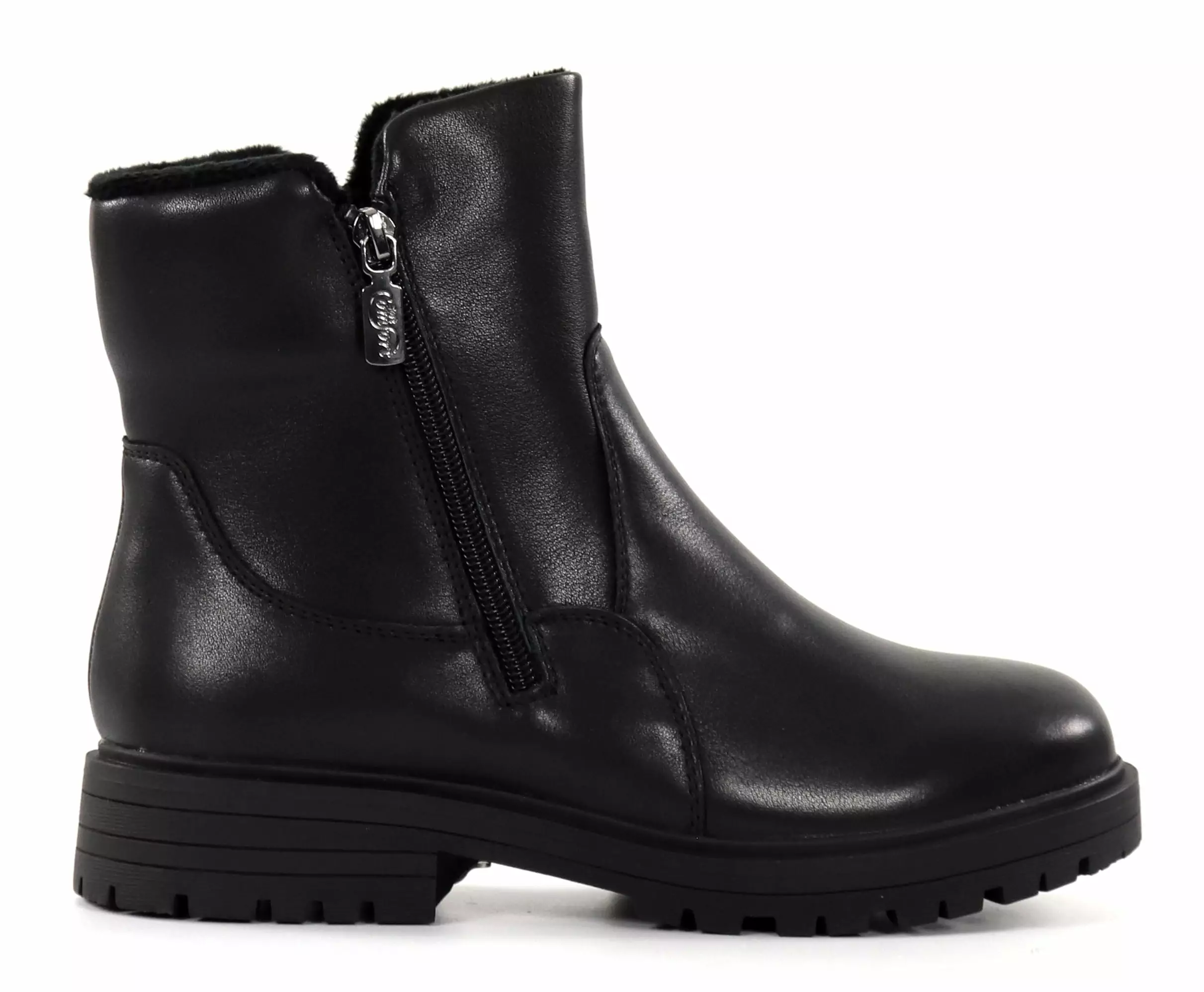Ankelboots i läder med vändbara halkskydd i botten. Dragkedjorna på båda sidor gör det enkelt att ta på sig skorna!