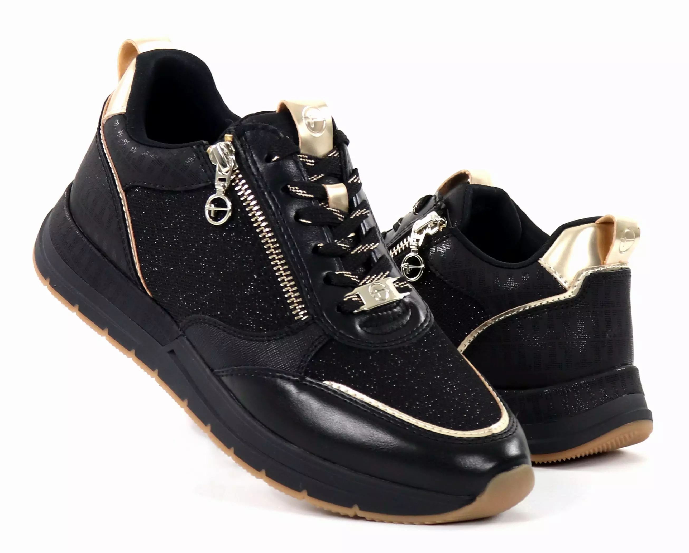 Tamaris sneakers med gyllene detaljer, som är lätta att ta på tack vare dragkedjan på utsidan! Skorna har vadderade och uttagbara innersulor, så du kan byta ut dem mot innersulor som passar dina fötter vid behov.