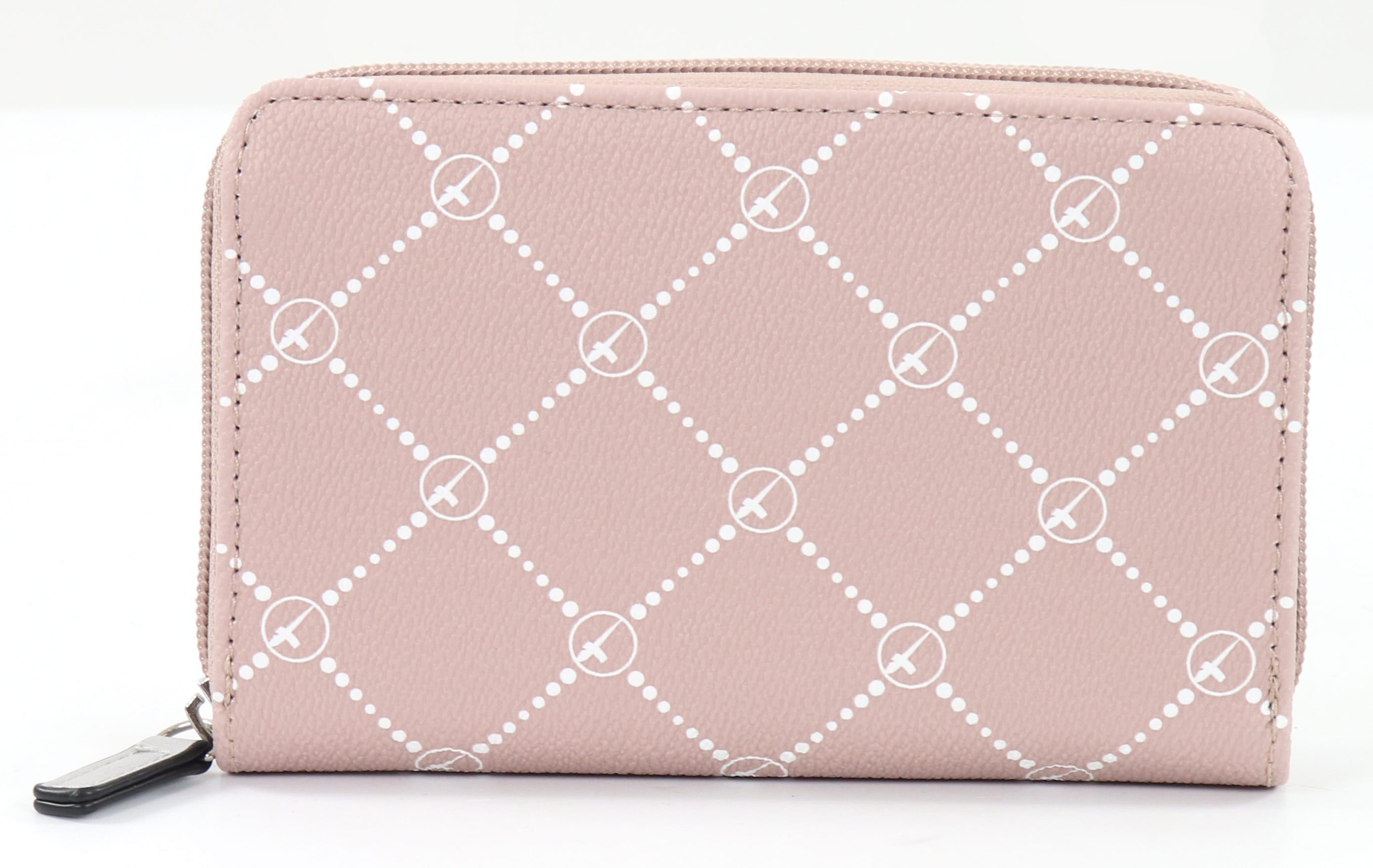 Mönstrad plånbok i syntetmaterial med dragkedja.