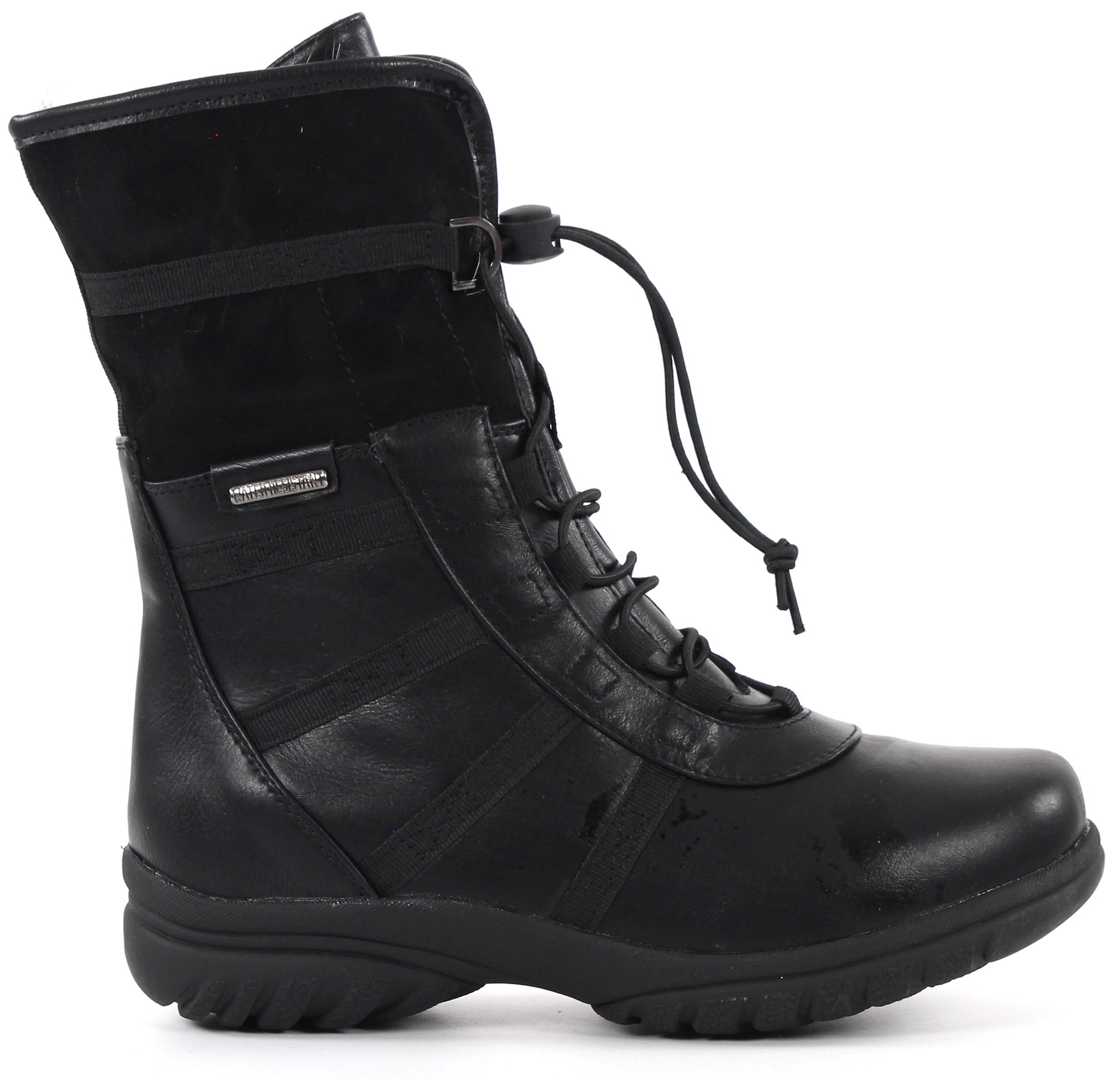Svarta stövlar av vattenavvisande syntetmaterial med snabbfäste.