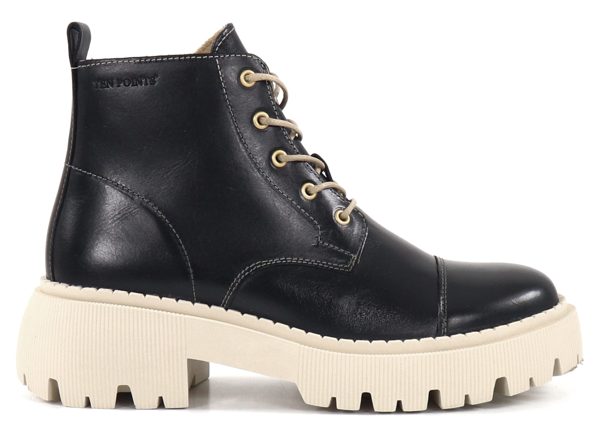 Ten Points ankelboots för kvinnor med tjock sula. Tillverkade av högkvalitativt läder, så de håller sig snygga länge.
