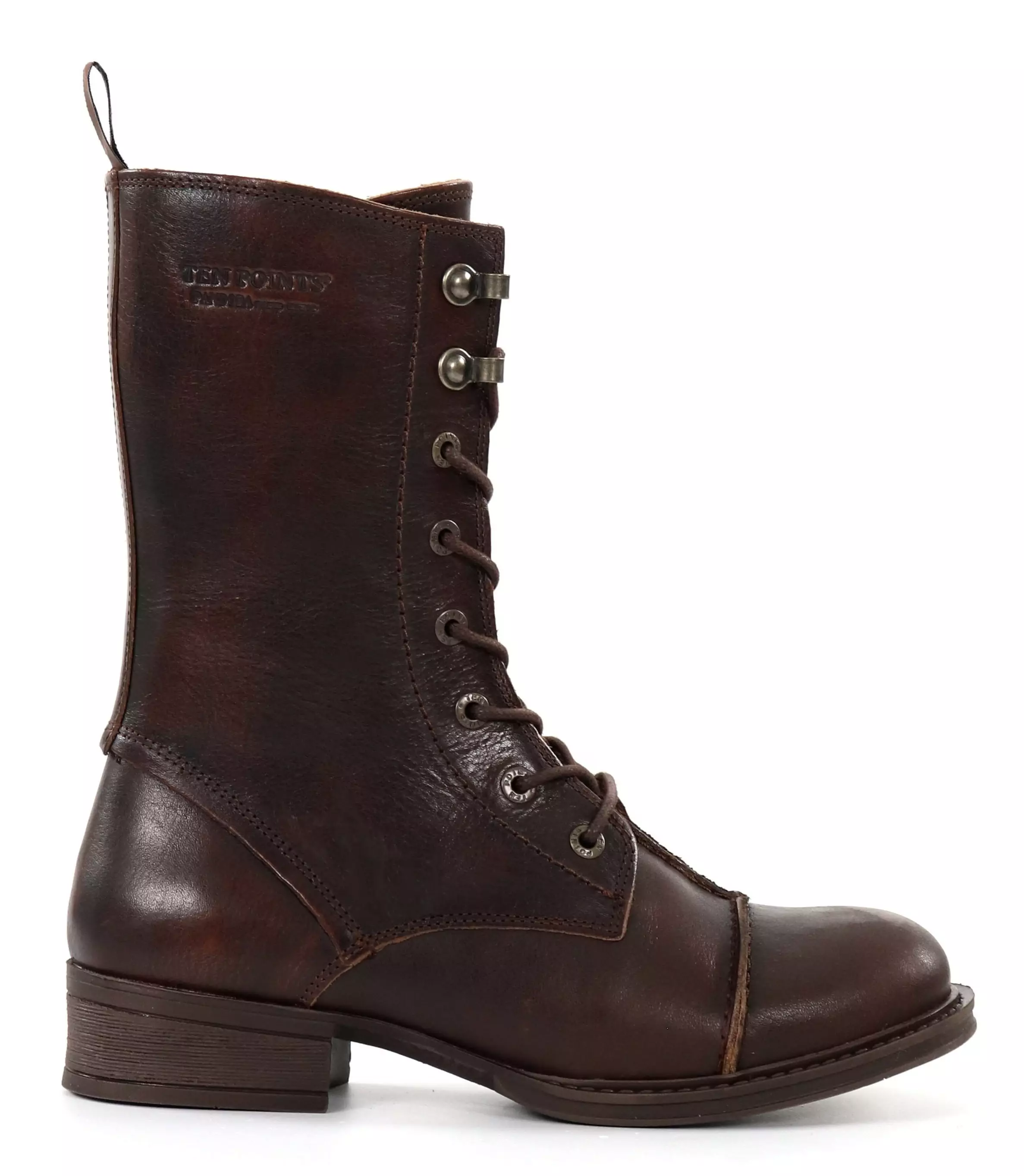 Mörkbruna Ten Points höga ankelboots. Ten Points investerar i kvalitet och hållbarhet i sina skor – det är därför de är handgjorda av material av högsta kvalitet, utan att kompromissa med komforten.