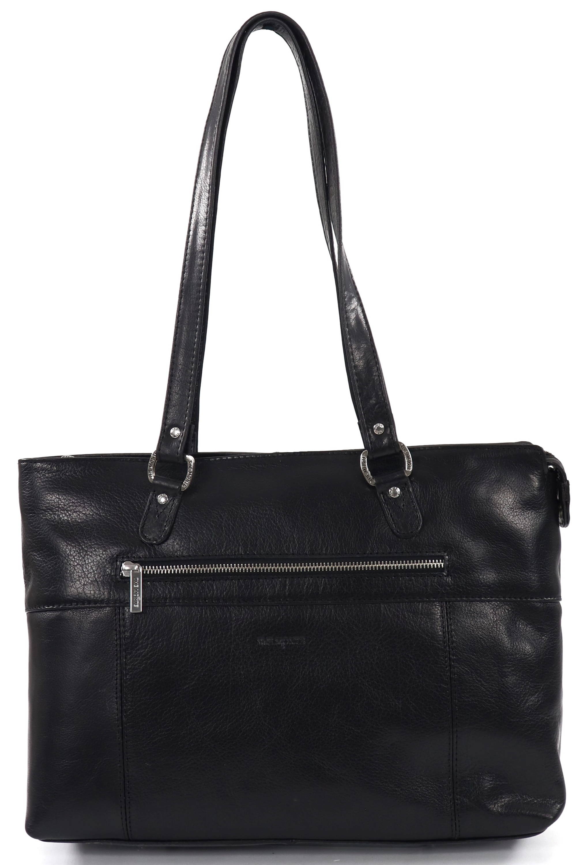 En rymlig läderväska med ett vadderat fack inuti för förvaring av en dator.