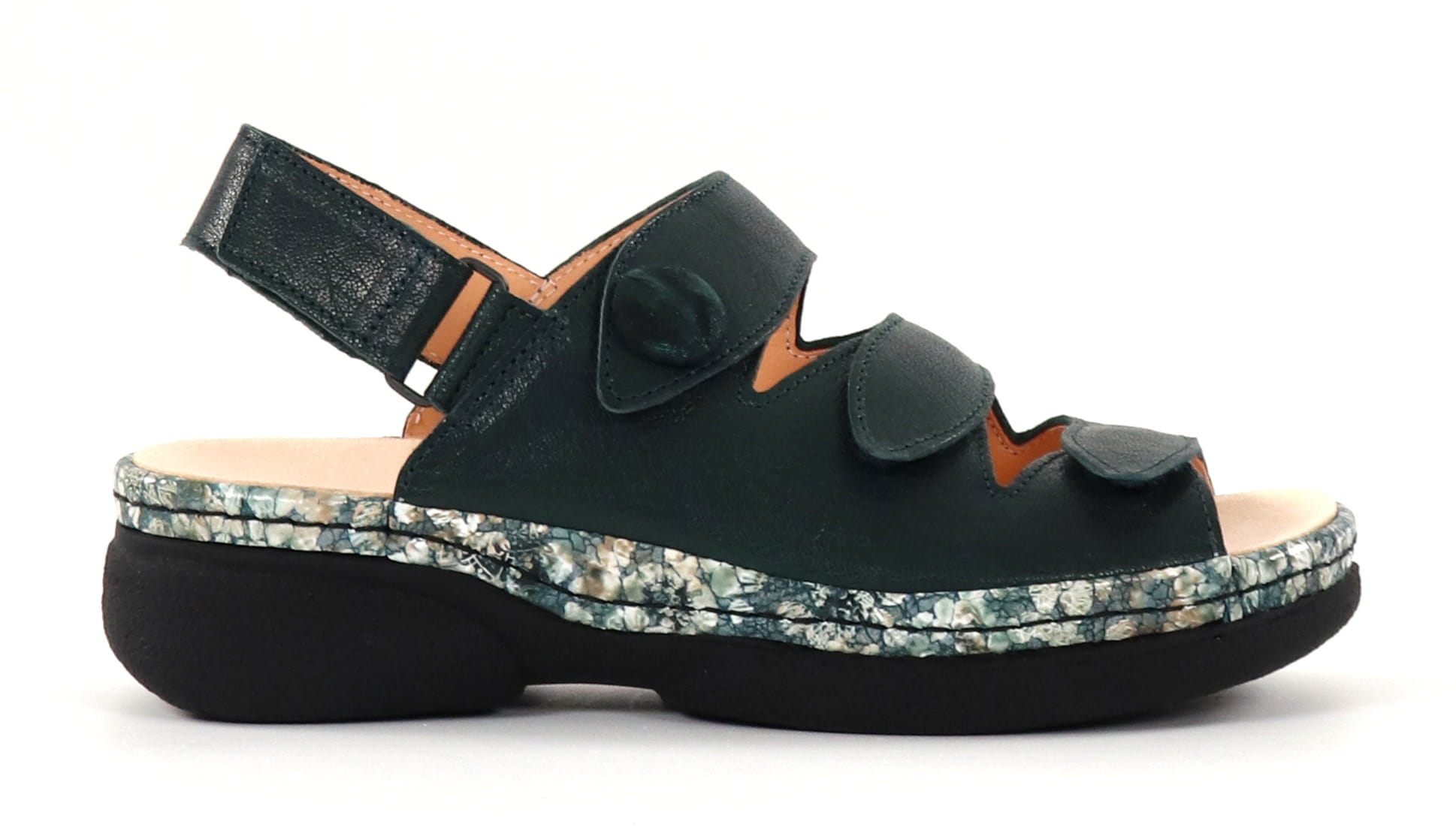Arbetssandaler i läder för damer med uttagbar innersula som stöder foten bra.