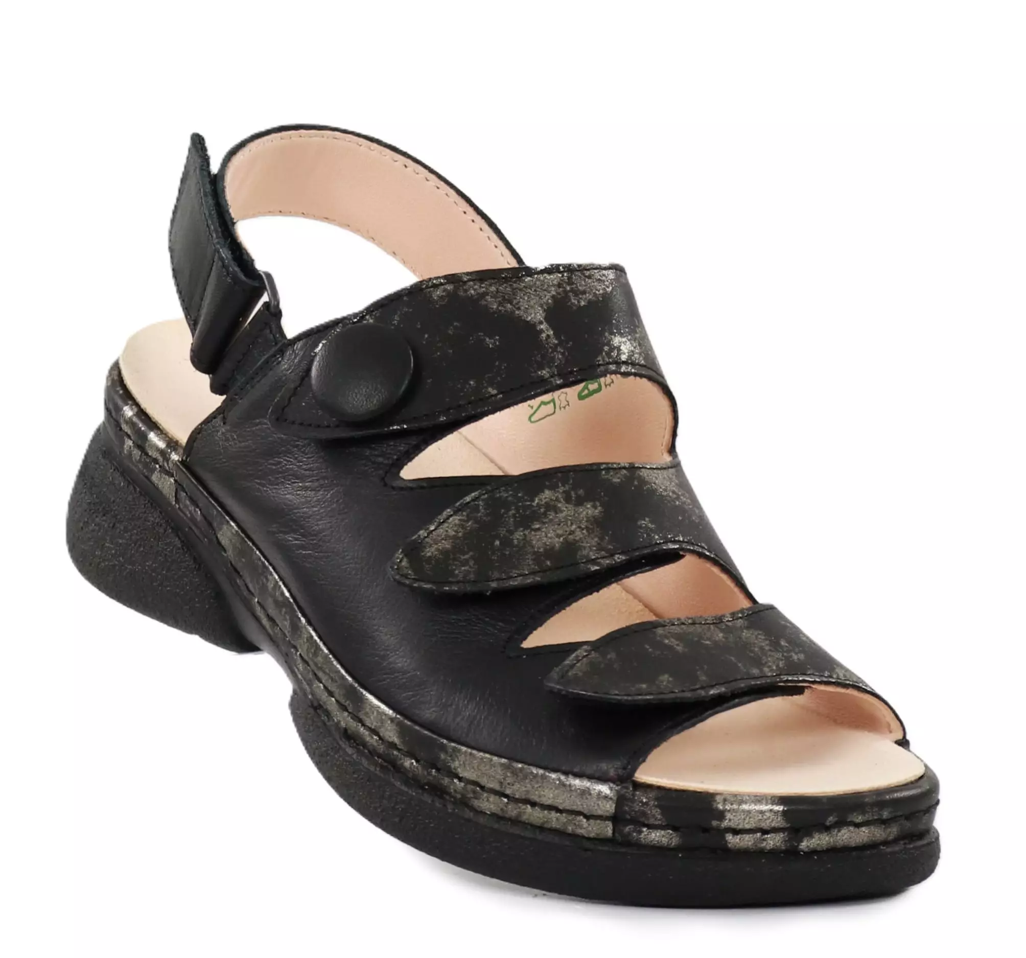 Damsandaler i äkta läder med uttagbara innersulor och justerbara kardborreband som gör dem bekväma och praktiska!