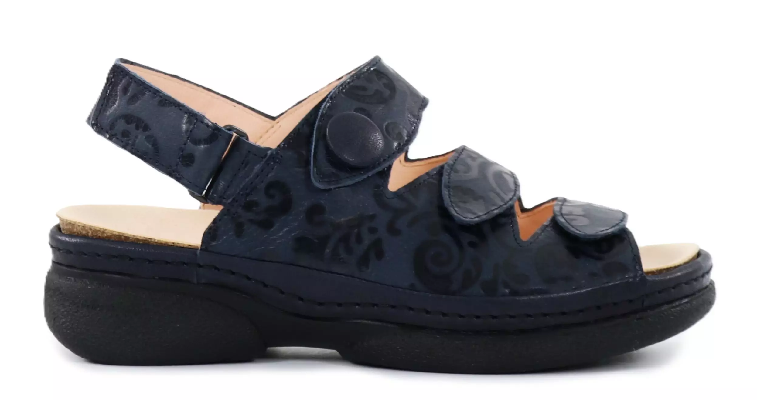 Damsandaler i äkta läder med uttagbara innersulor och justerbara kardborreband som gör dem bekväma och praktiska!