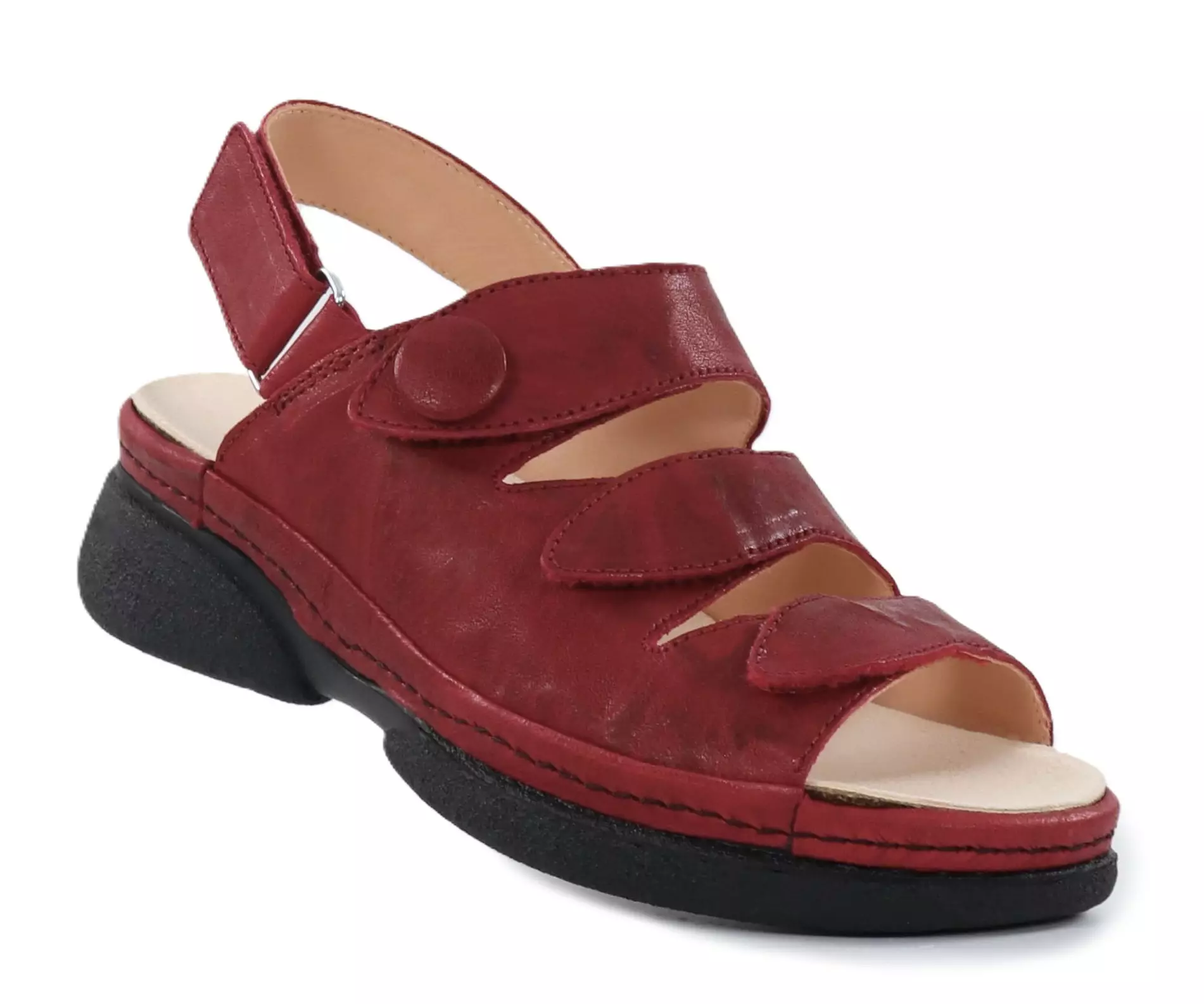 Damsandaler i äkta läder med uttagbara innersulor och justerbara kardborreband som gör dem bekväma och praktiska!
