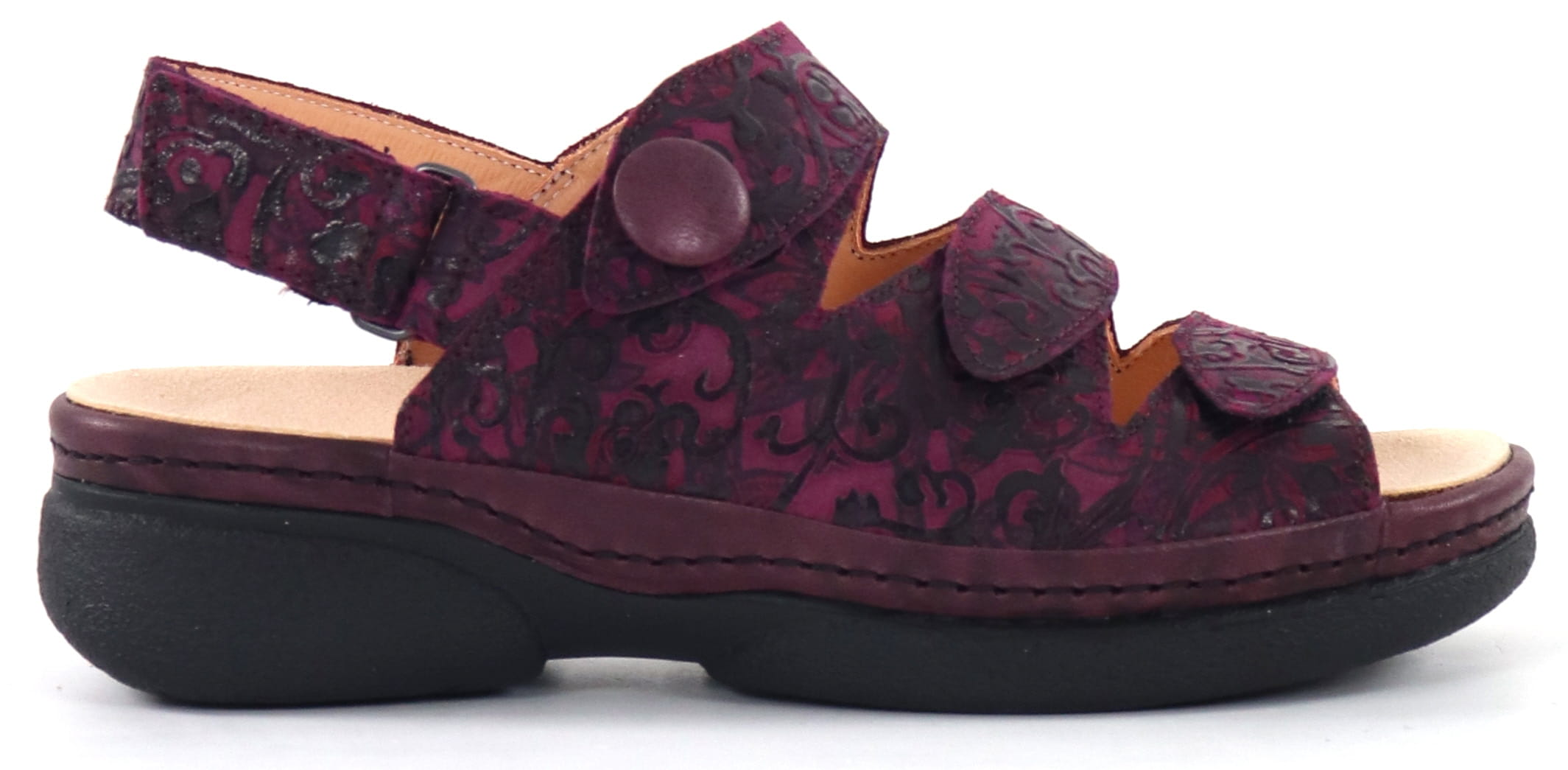 Arbetssandaler med riktigt bra justeringsmöjligheter, tre kardborreband fram, även en justerrem bak. Uttagbar innersula i läder. Vacker texturerad läderfärgning.
