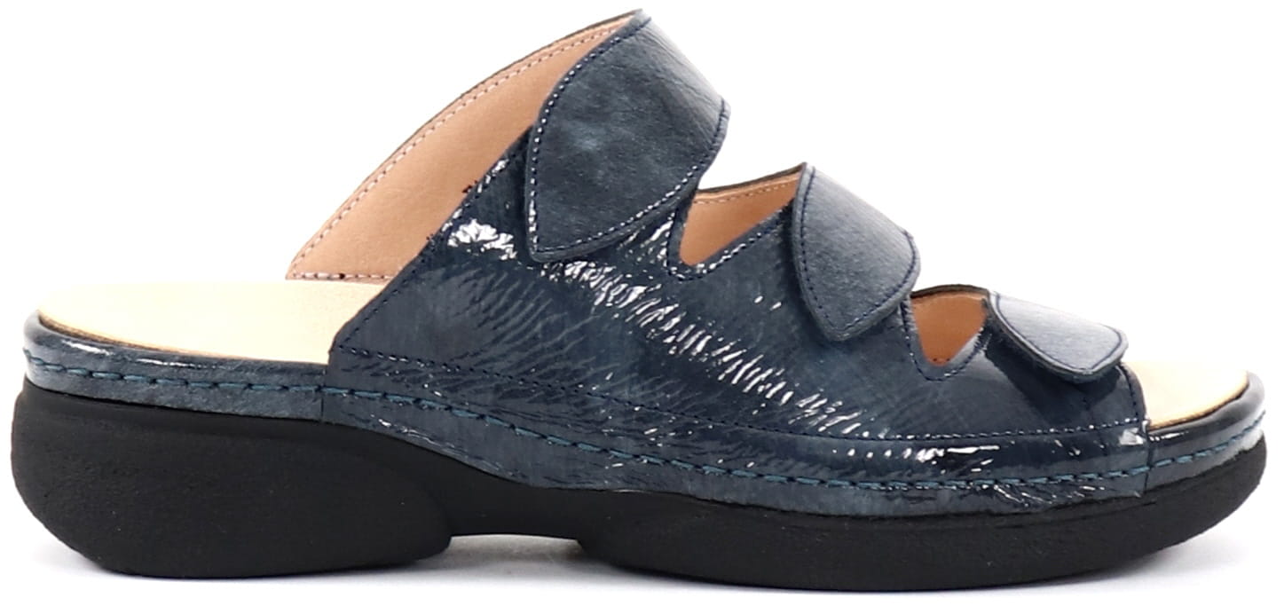 Arbetssandaler i glänsande läder med uttagbara innersula.