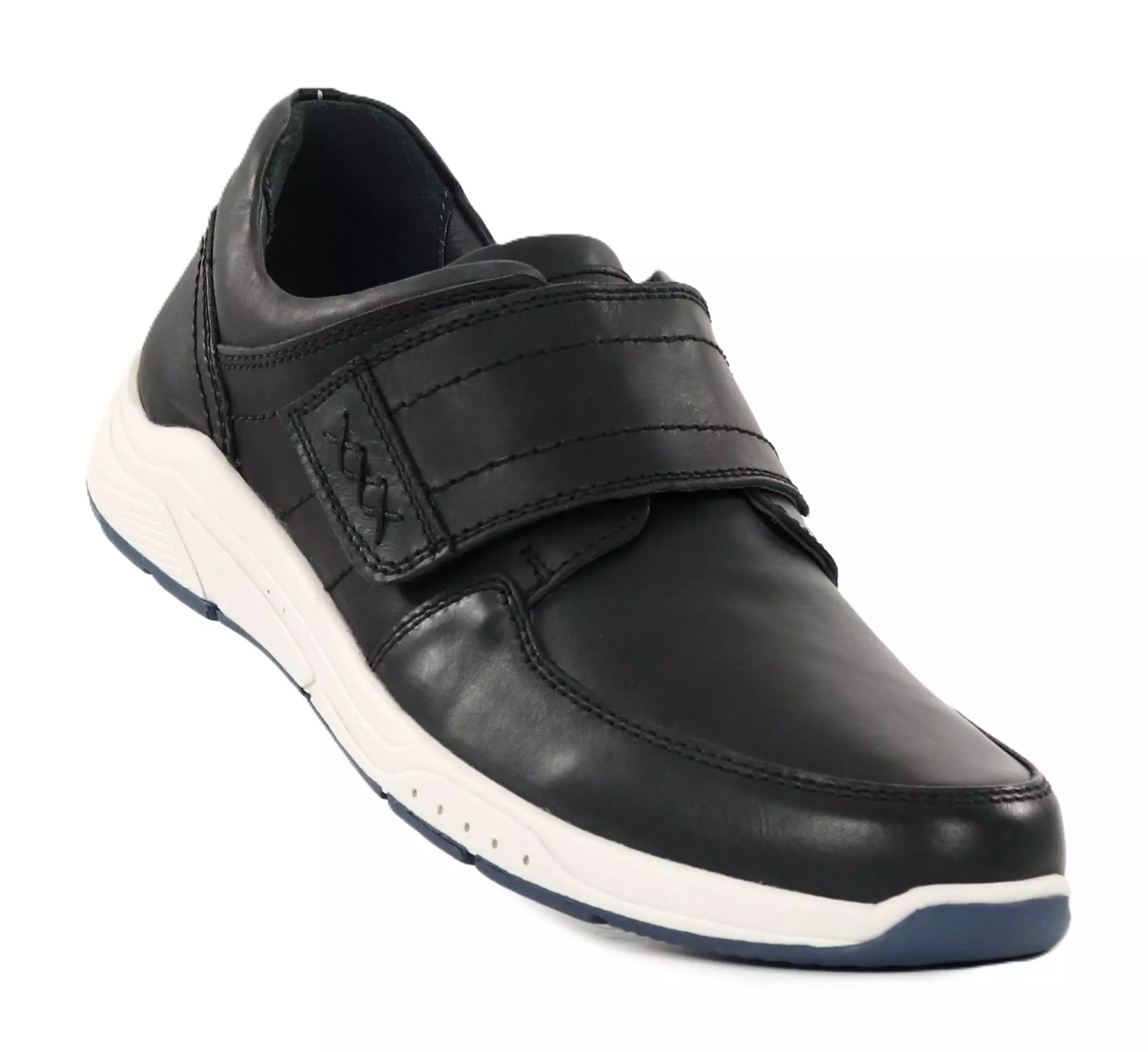 Topmans promenadskor är det perfekta valet för dig som värdesätter komfort och kvalitet i skor! Denna modell har en slitstark ovandel i äkta läder och en lättanvänd kardborreknäppning på ovansidan. Topman-skor tillverkas av material av högsta kvalitet på skofabriken Parkano och i små noggrant utvalda hantverksfabriker i Europa.