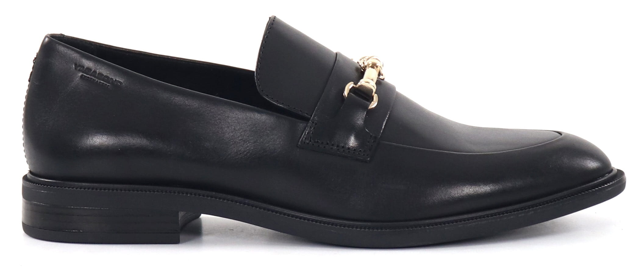 Loafers i läder med ett guldfärgat dekorativt spänne.