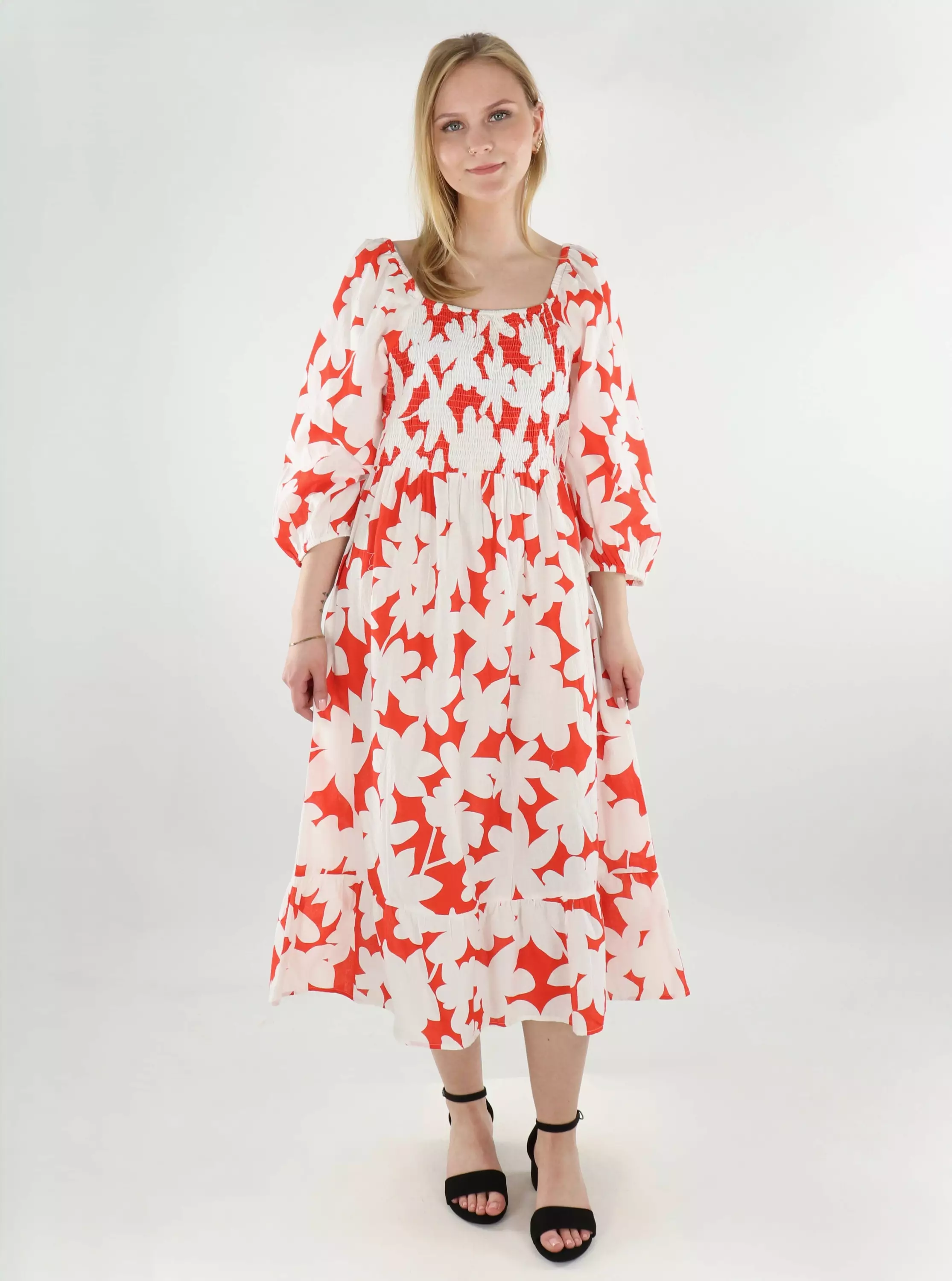 Vero Moda blommig klänning Dicthe Square eldröd/loa