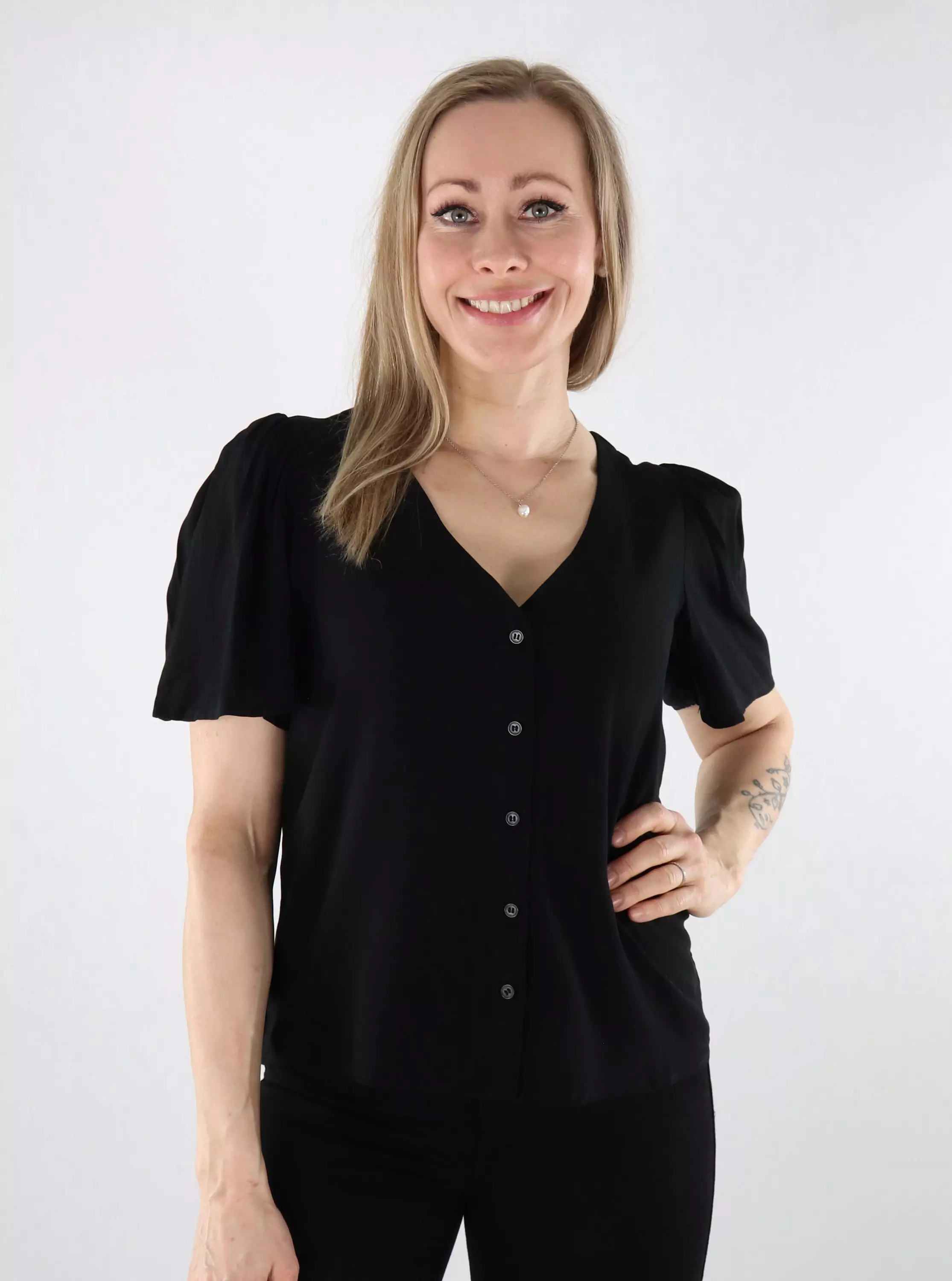 En lätt t-shirt med knappstängning och feminina fjärilsärmar. T-shirten är gjord av ansvarsfullt producerad LENZING ECOVERO viskos.