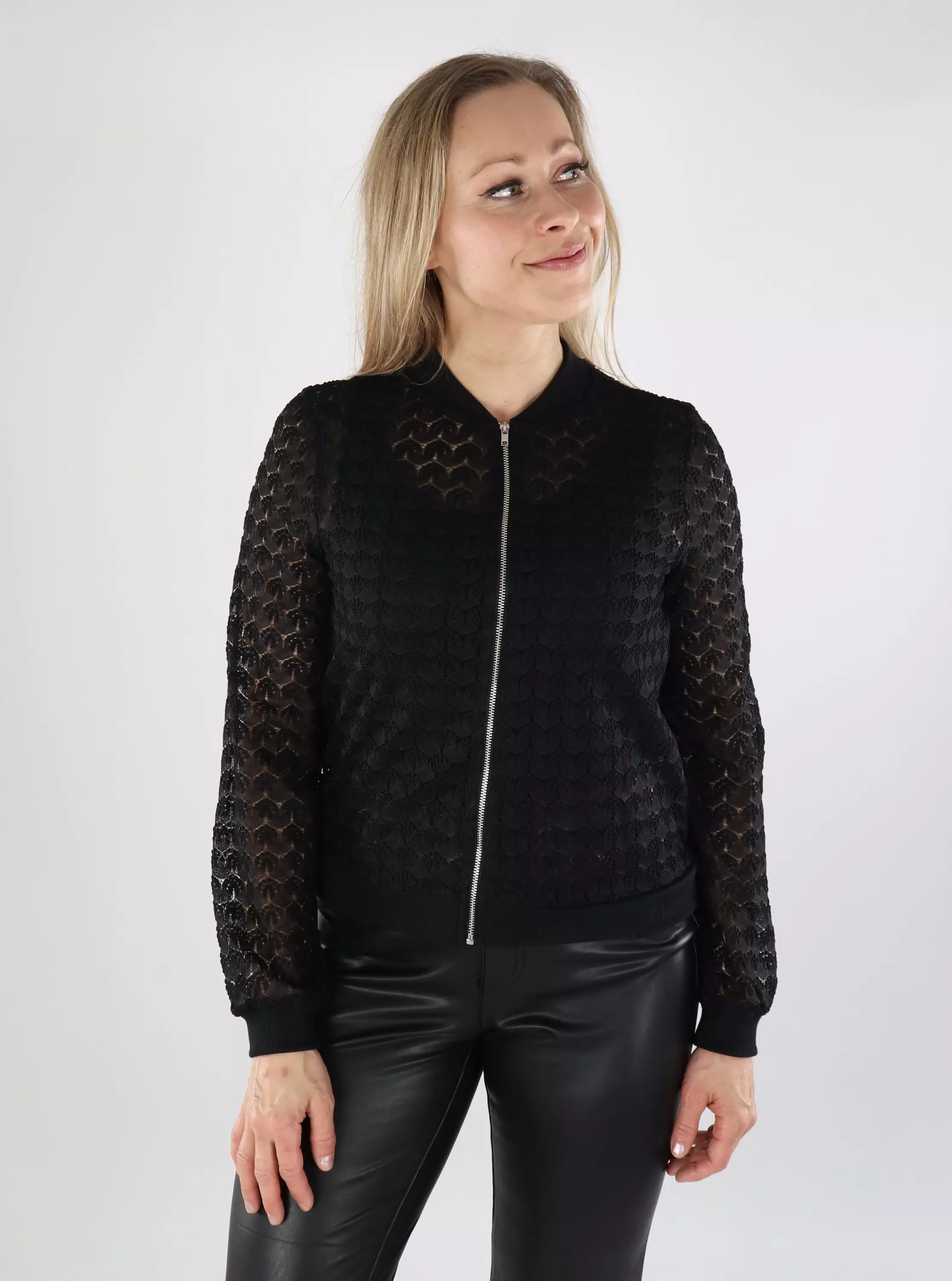 Vero Modas svarta spetsbomberjacka är det perfekta valet för vardagsbruk och fester. Det lätta spetstyget och den moderna bomberdesignen gör denna jacka mångsidig och snygg.