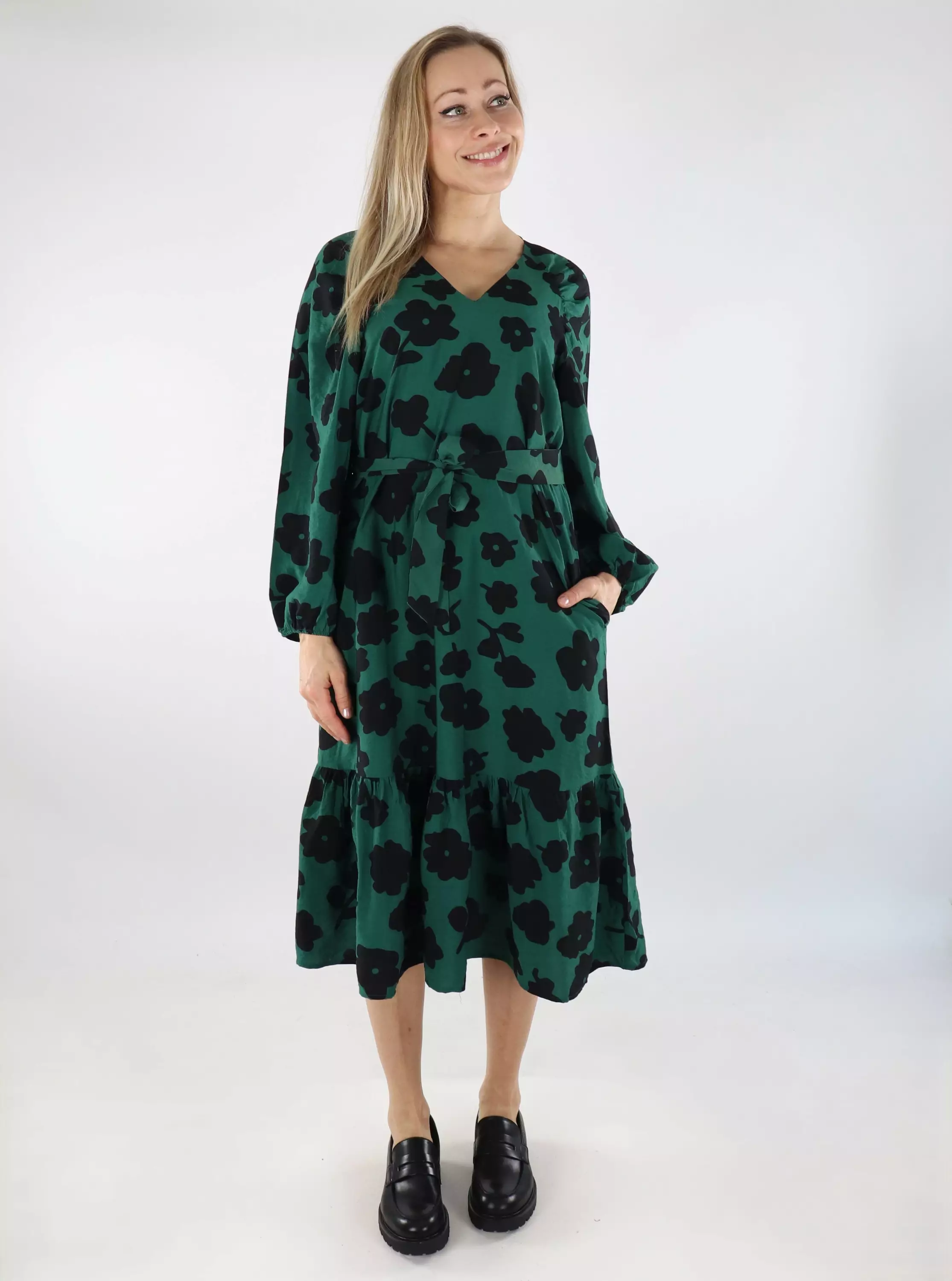 Vero Moda damklänning 7/8 V-ringad mörkgrön/dagny