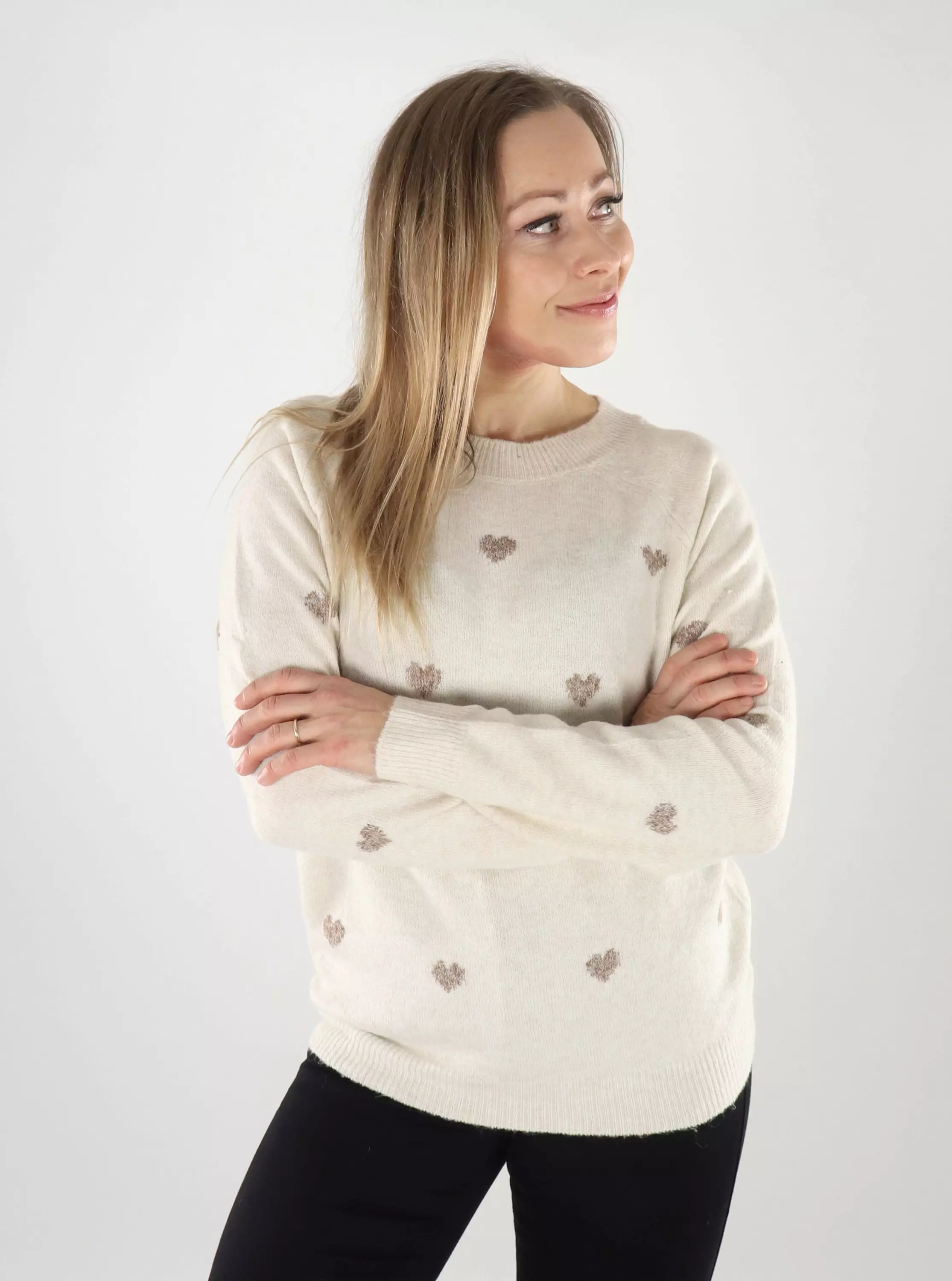 En riktigt mjuk tröja med hjärtmönster, där den klassiska modellen gör den till ett mångsidigt val för vardag och fritid.
