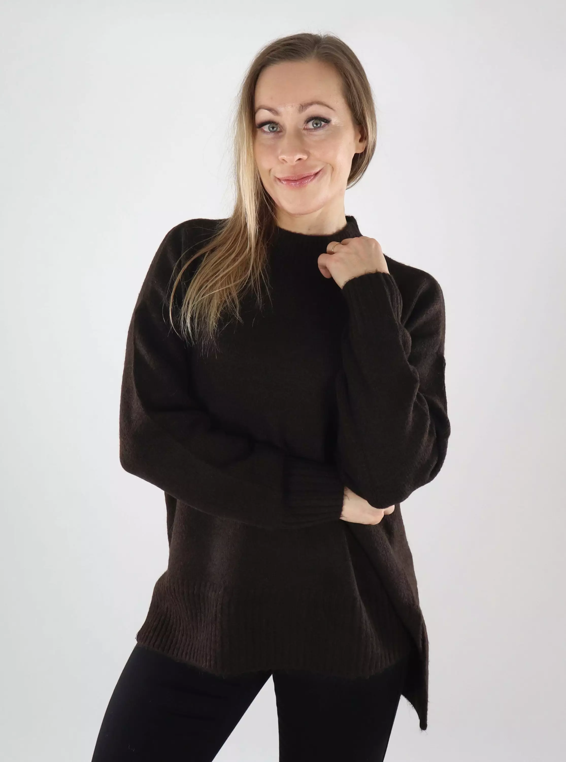 En mörkbrun Lefile-tröja från Vero Moda som håller dig varm och känns bekväm att bära. Den längre bakkanten och sidoslitsarna ökar rörelsefriheten och ger outfiten en modern, avslappnad look.