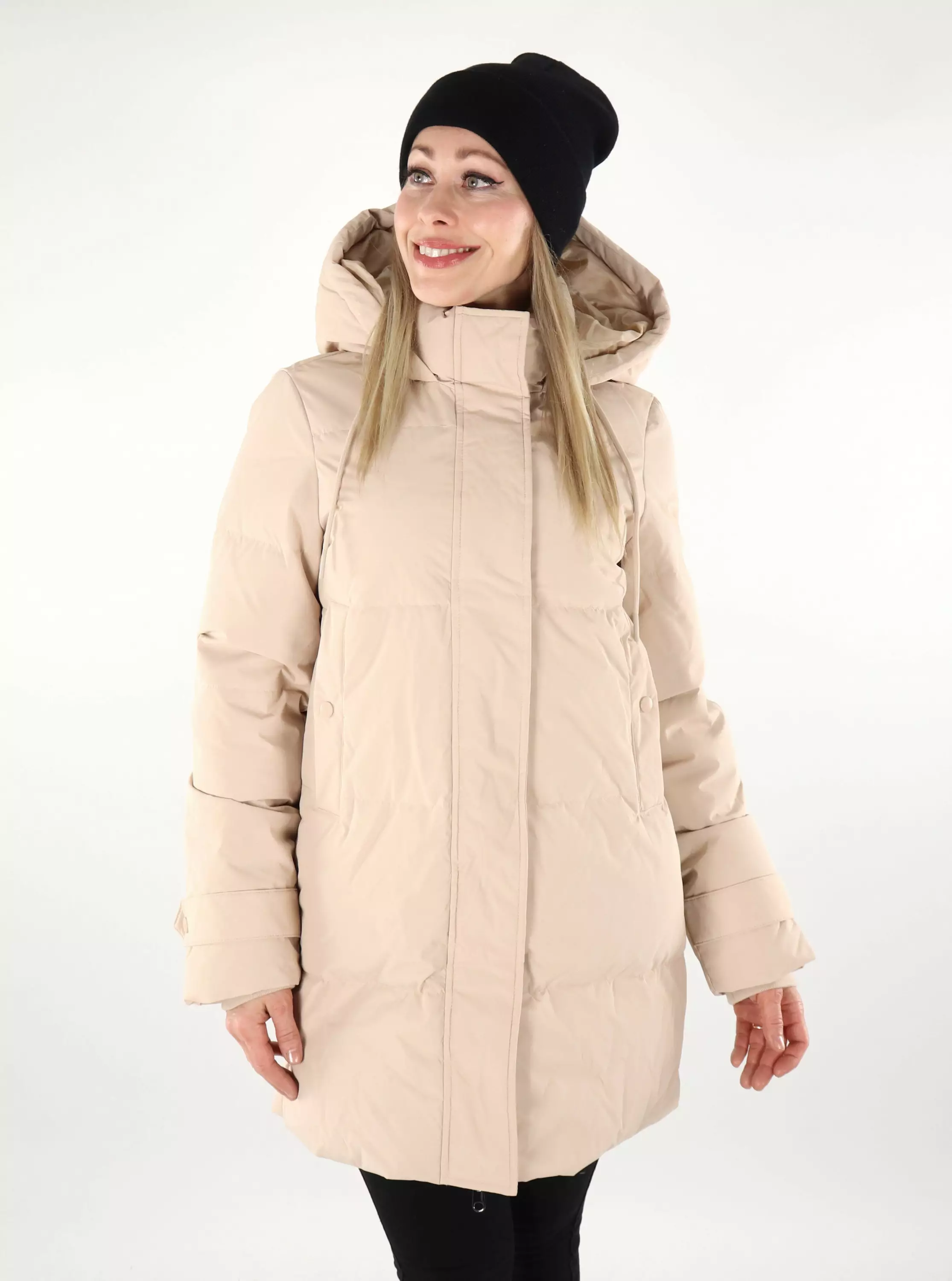 Vero Modas beiga dunkappa som håller dig varm även under de kallaste vinterdagarna. Tillverkad av ansvarsfullt inköpt dun.