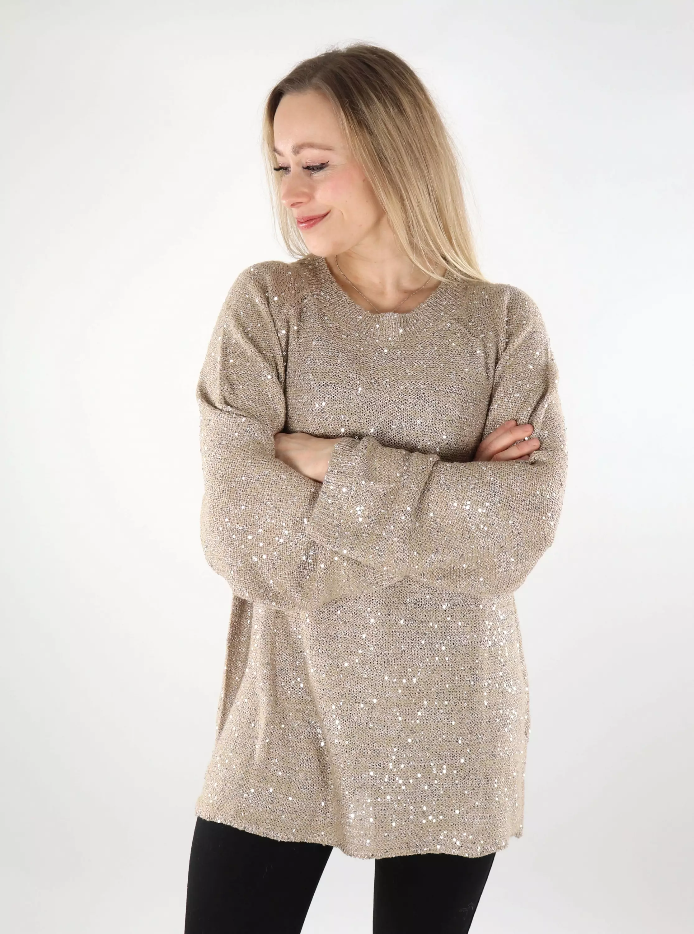 En underbar lång tröja med gnistrande paljetter. Tröjan har snygga avslappnade ärmar.