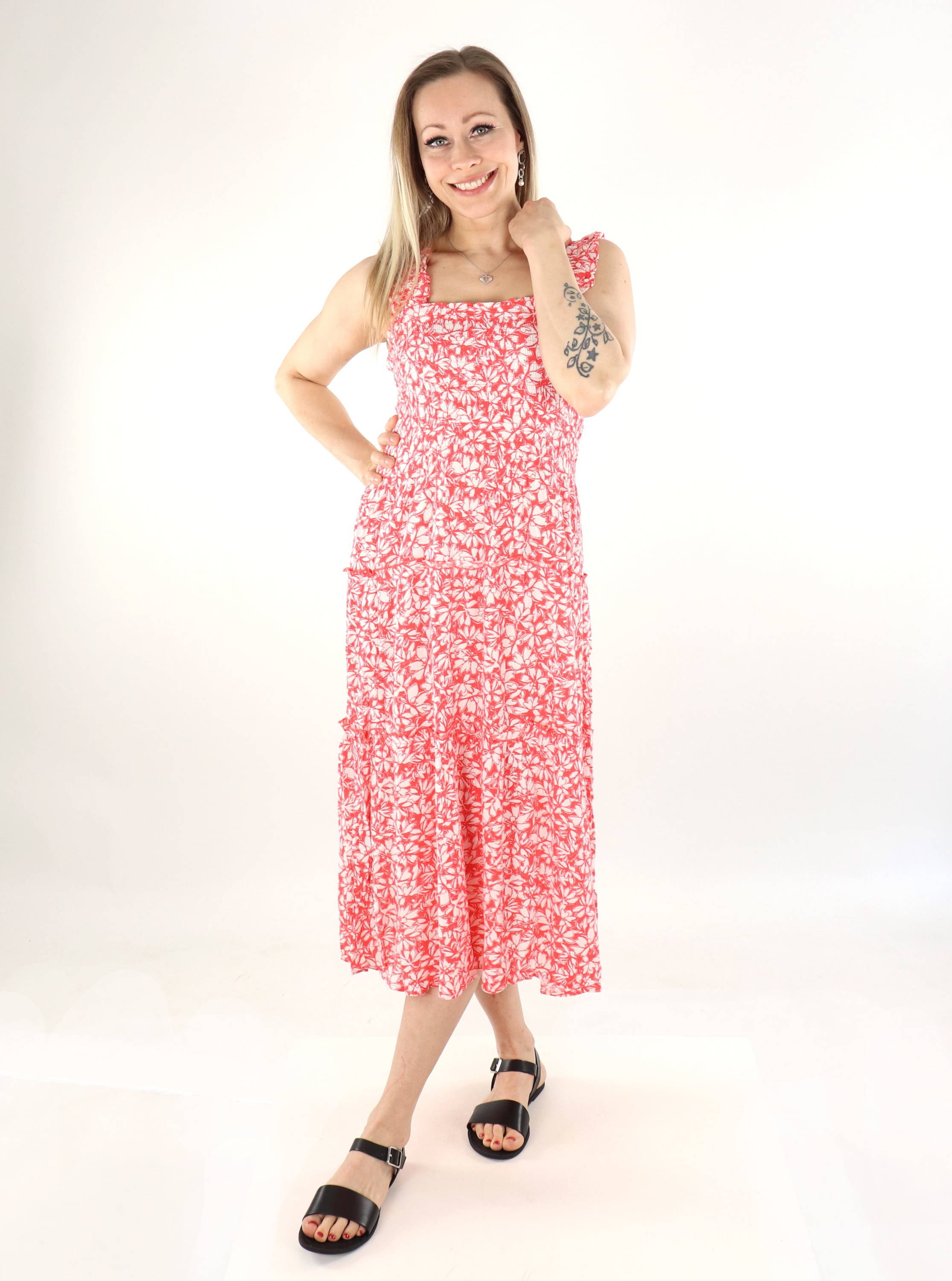 Lätt och andningsbar klänning med smokingveckad topp. Lätt att kombinera med både vardags- och festoutfits!