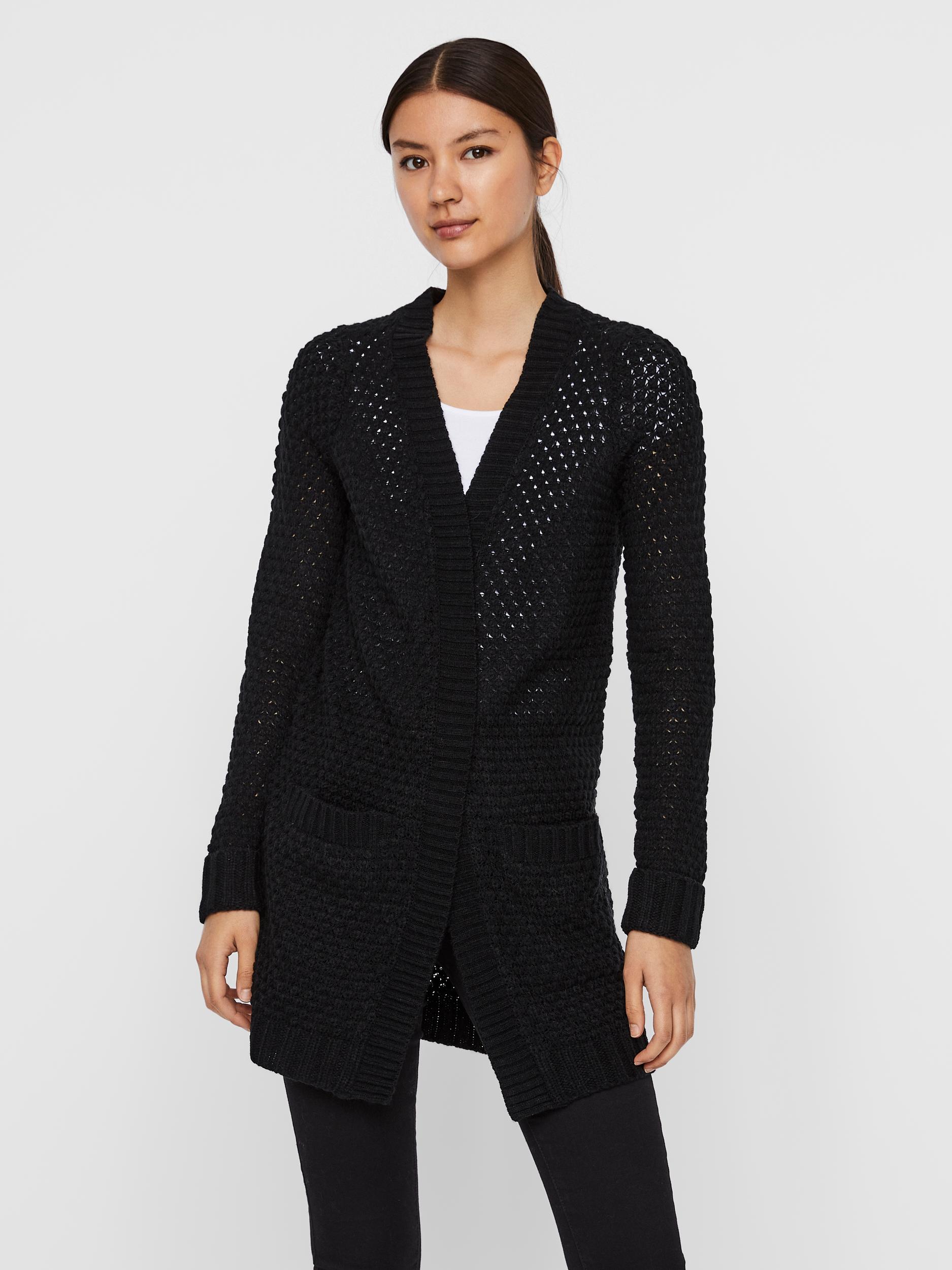 Vero Moda lång, svart dam cardigan med fickor Esme surf