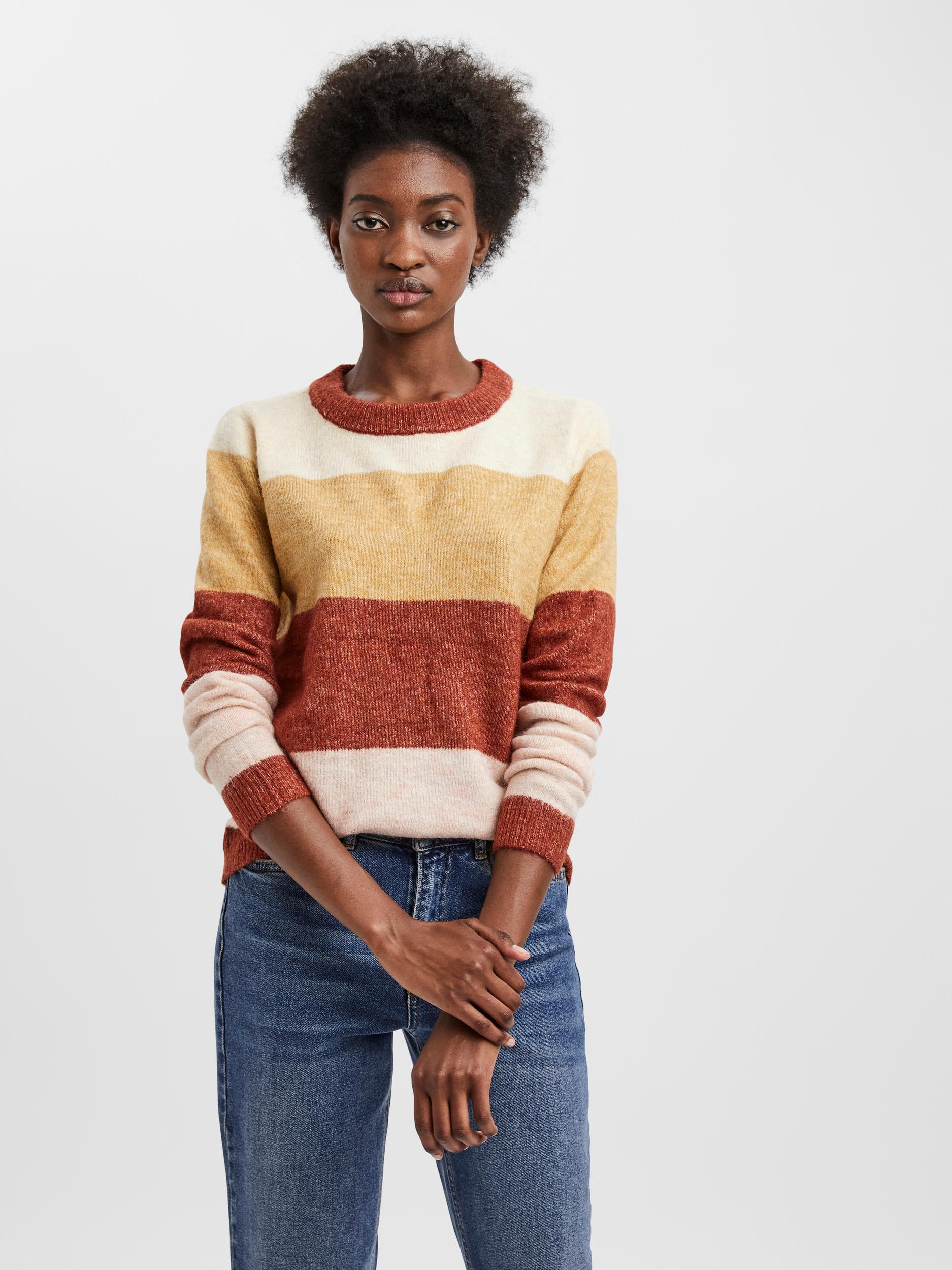 Vero Moda randig stickad tröja för damer Plaza chili oil/birch