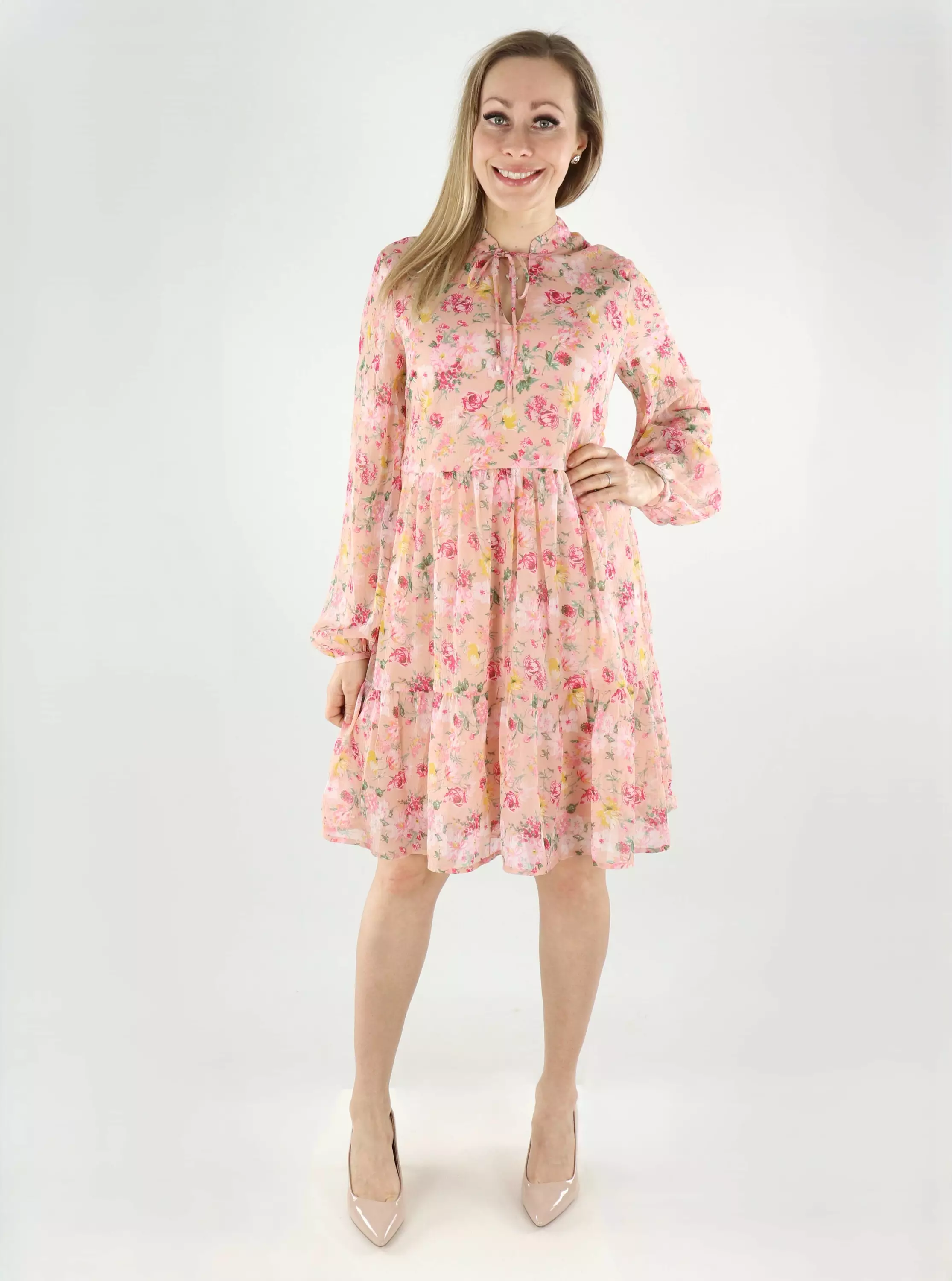 Vila blommig klänning V-ringad dimmig rosa/blommig