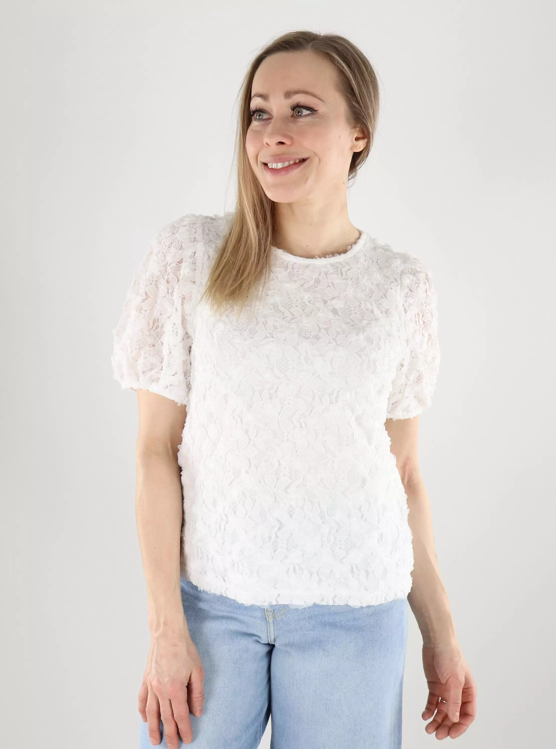 Denna t-shirt från Vila kommer att förtrolla dig med sin vackra upphöjda blombroderi, som ger en feminin och delikat look till outfiten. Det mjuka materialet och den tidlösa designen gör den till ett enkelt val för vardagslivet och mer festliga stunder!