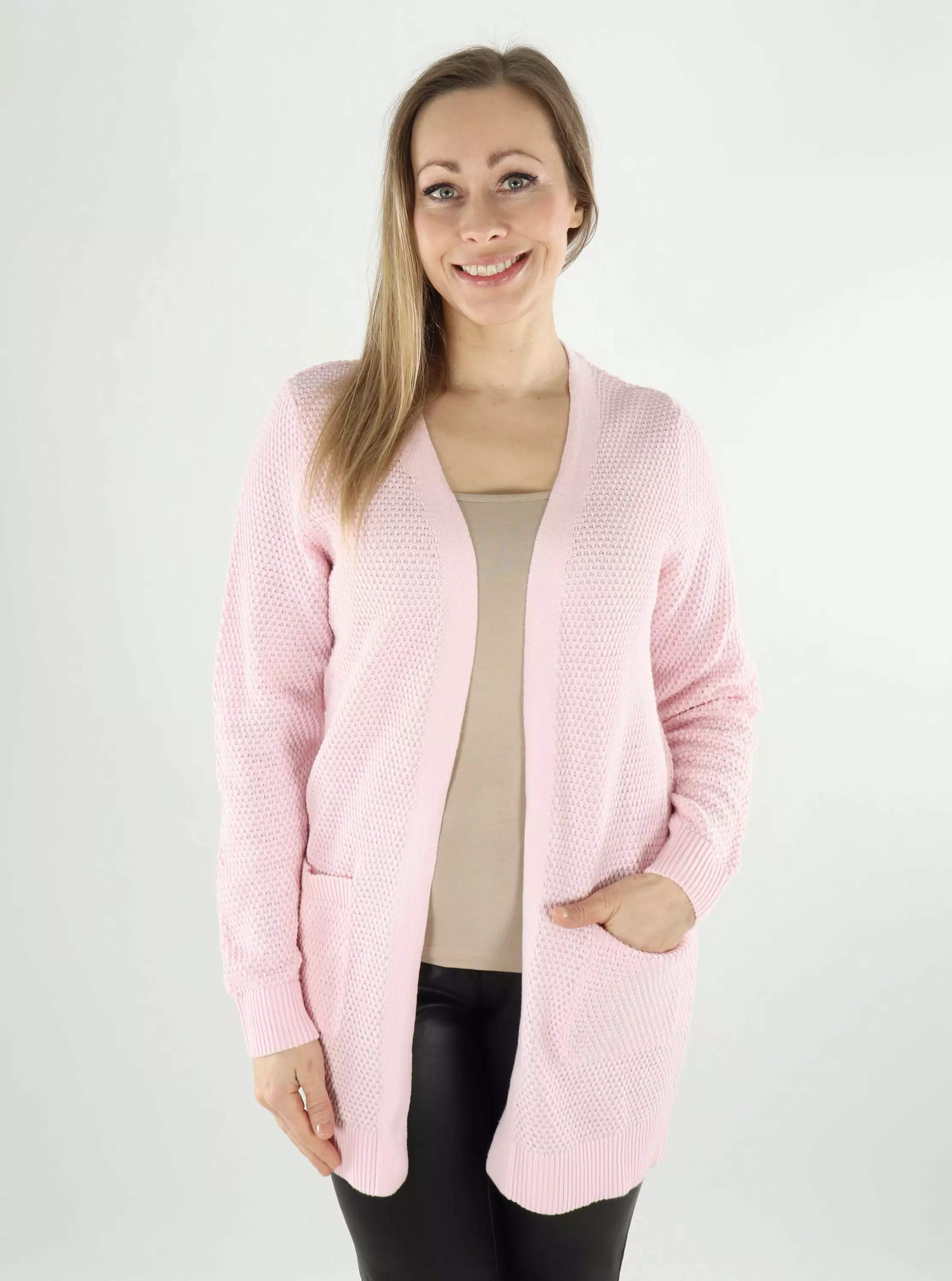 En kofta tillverkad av ekologisk och högkvalitativ ekologisk bomull med fickor framtill.