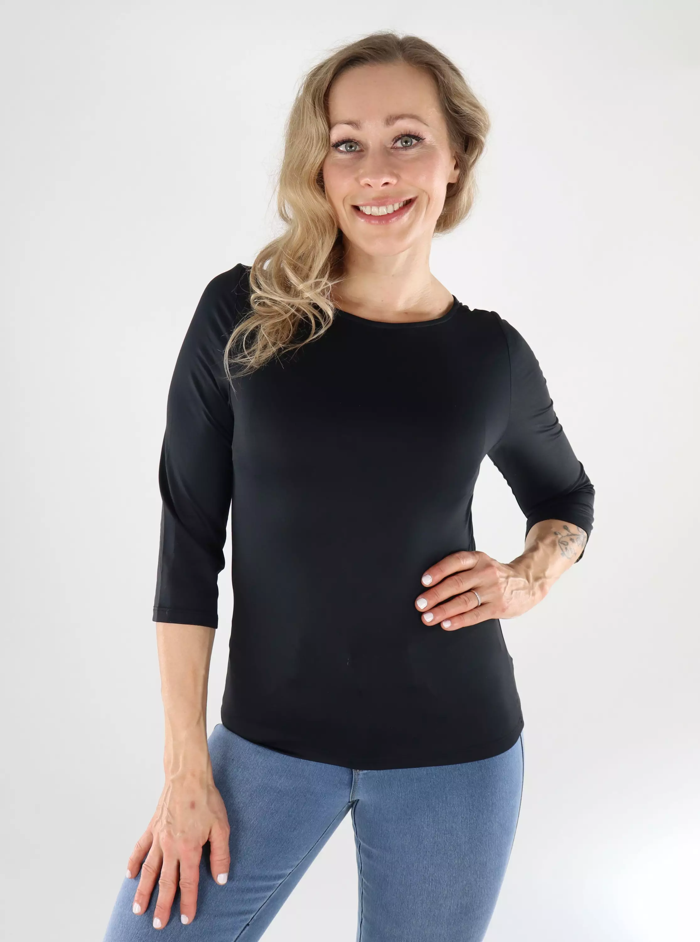 En klassisk svart skjorta med båthals och 2/4-ärmar. Ett absolut basplagg i garderoben som kan kombineras med vilken nederdel som helst!