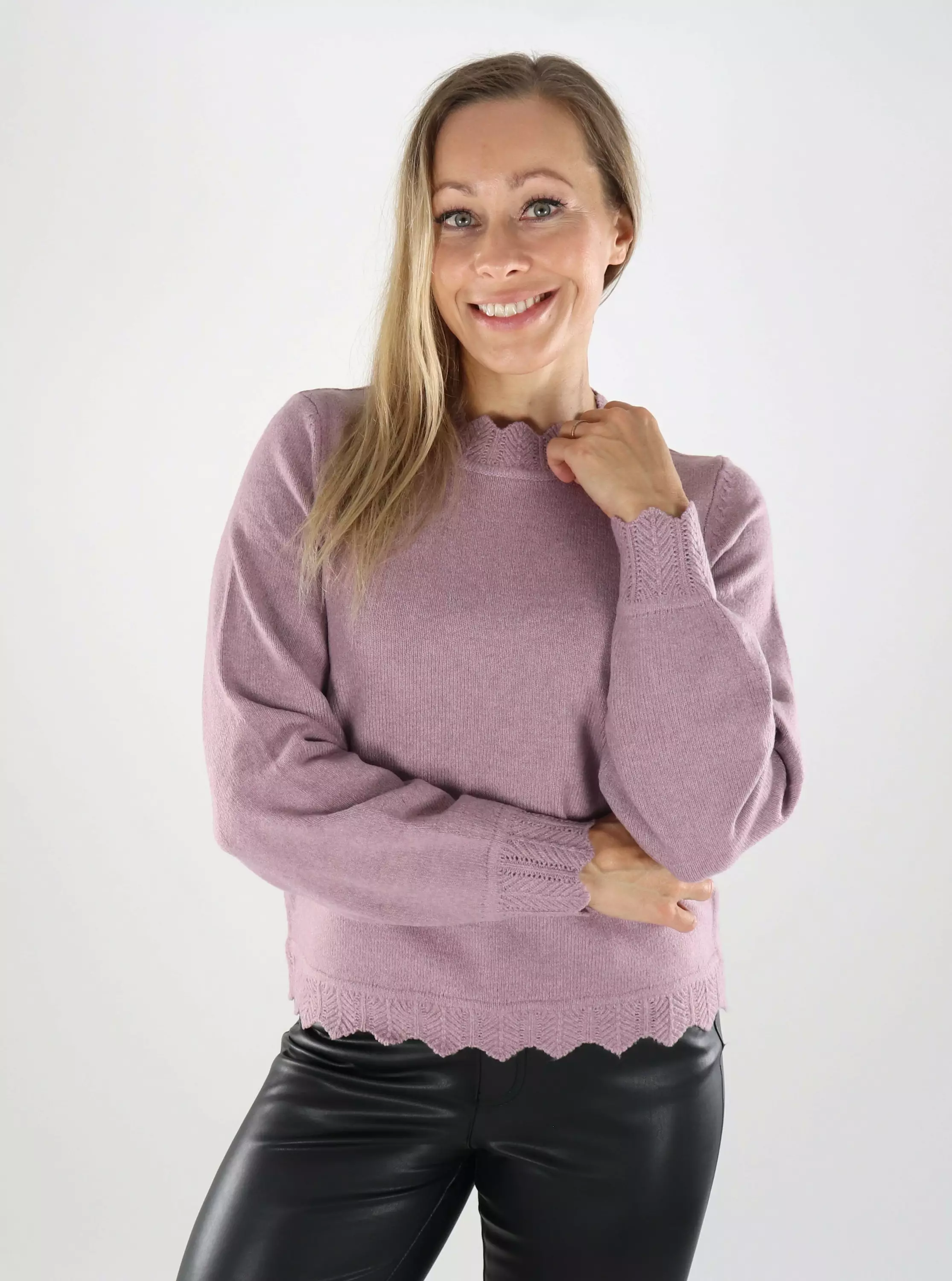 En mjuk och snygg tröja med iögonfallande mönstrade ribbade kanter. Ett diskret och iögonfallande val för vardagsbruk eller kontoret!