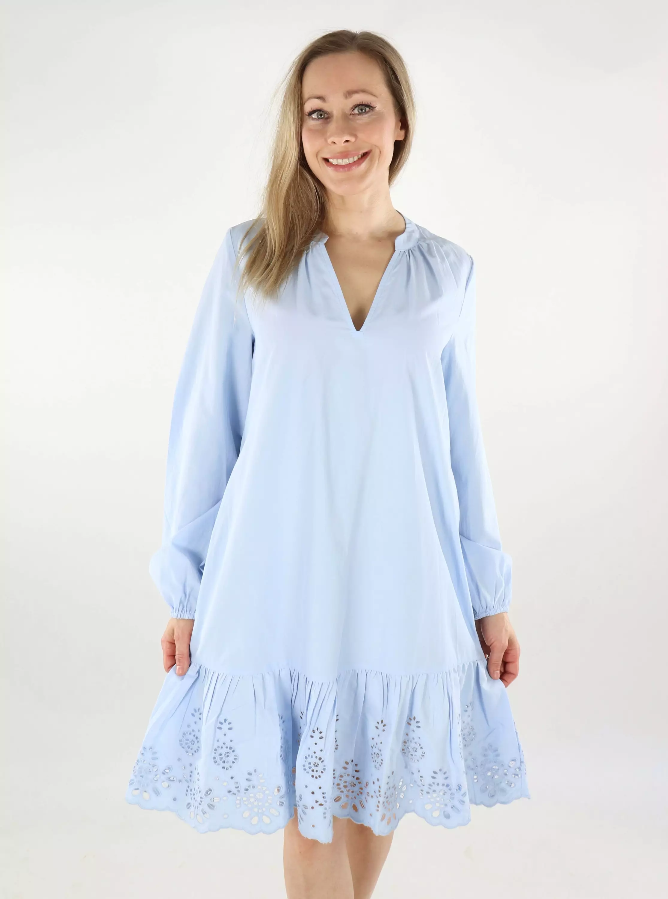 En kort klänning från Vila med ett vackert spetsmönstrat tyg vid nederkanten och dragsko i midjan. Den lätta och luftiga modellen är perfekt för sommardagar eller festligare tillfällen!