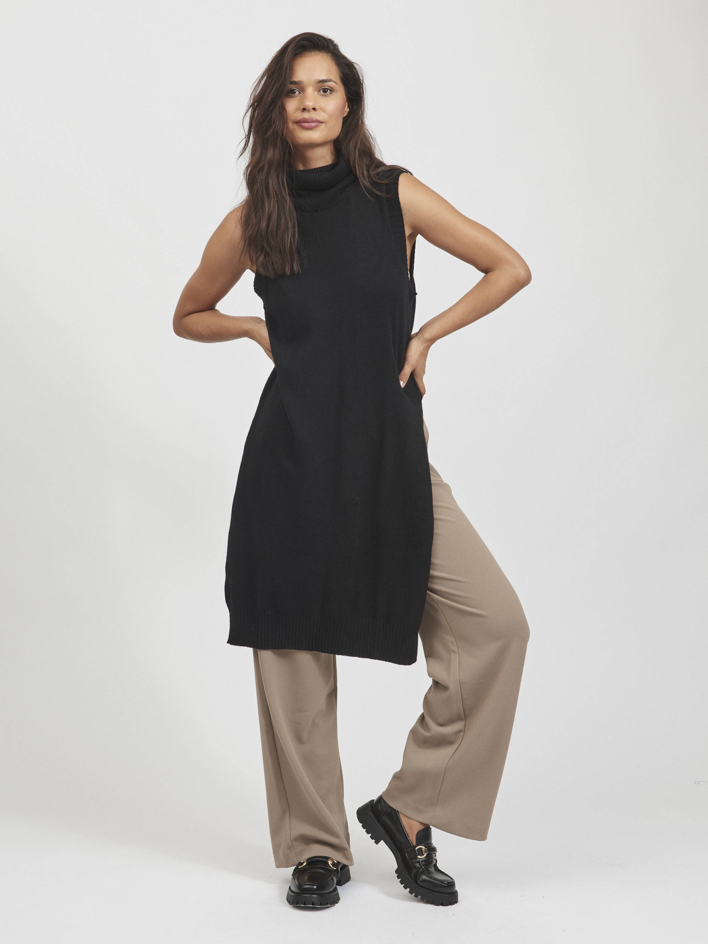 Vila lång, mjuk stickad väst Ril long svart för damer