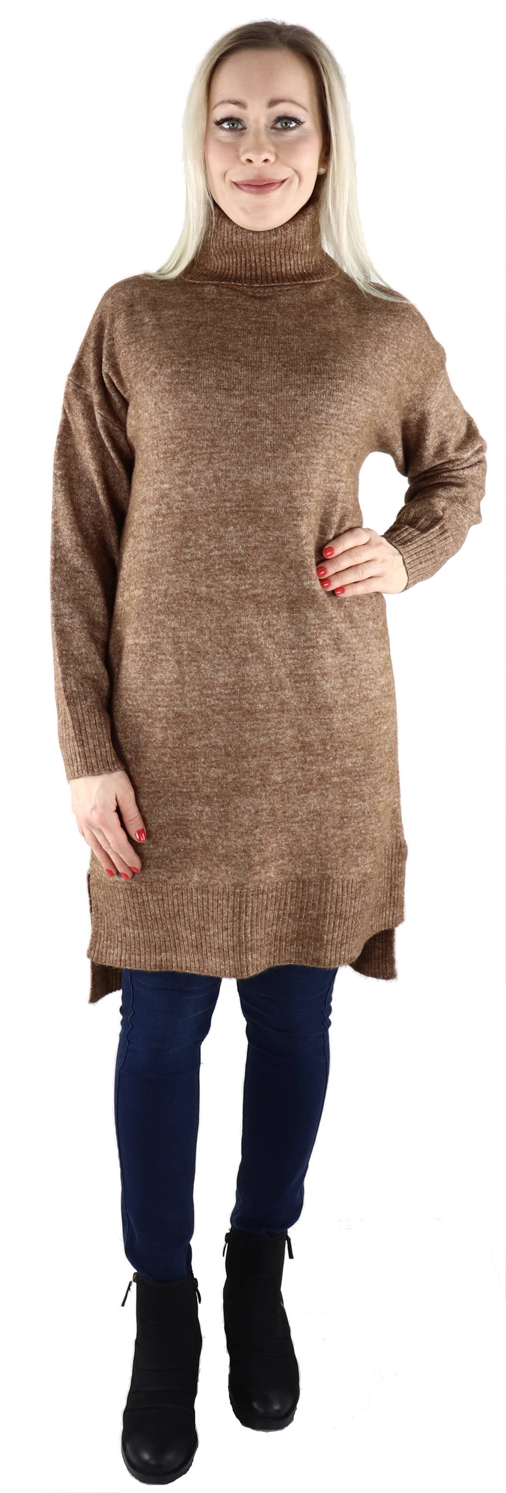 Vila lång stickad dam tunika Ella cowlneck, grå, brun