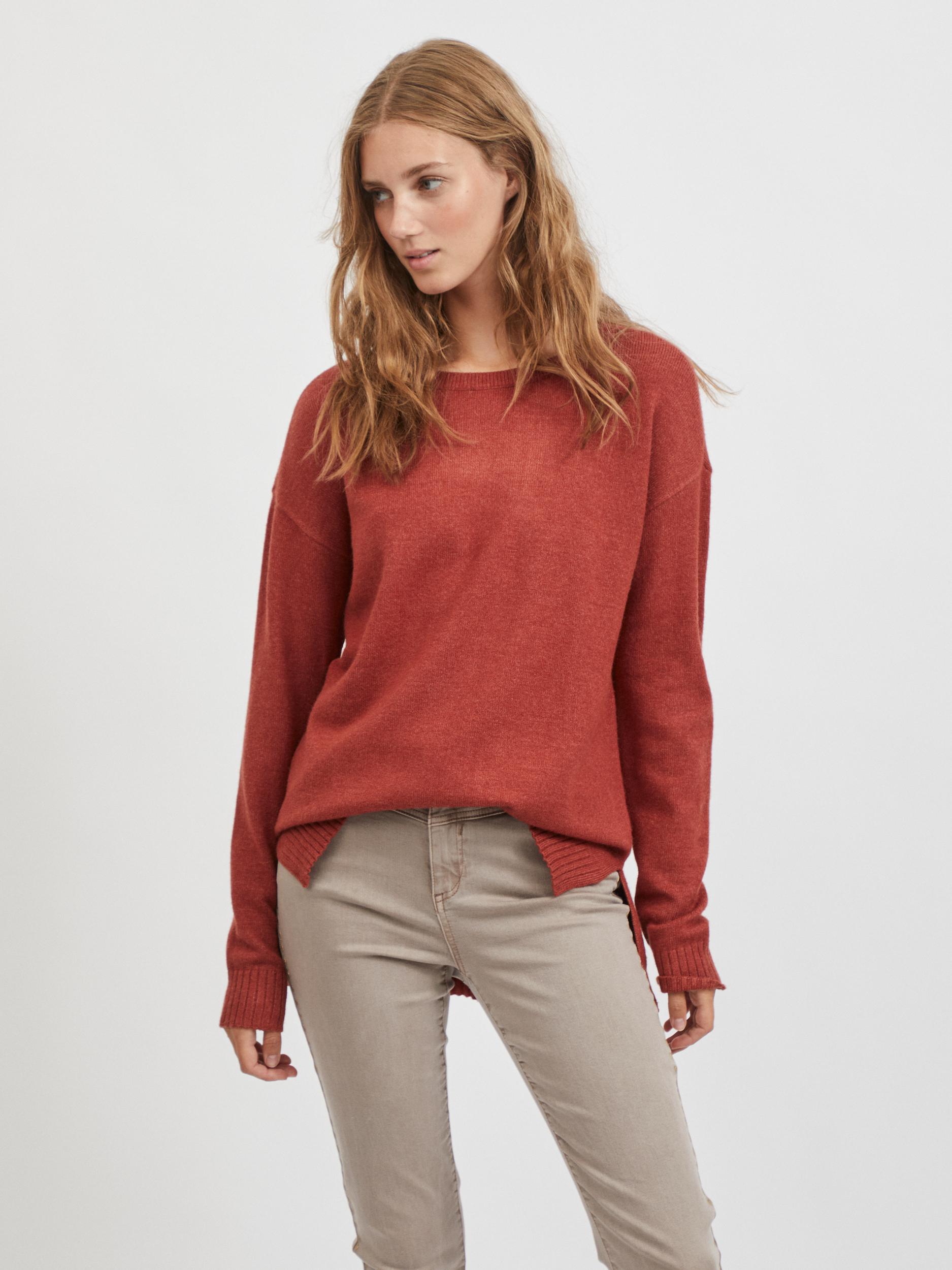 Vila mjuk stickad dam tröja lös Vila Ril high low burn henna röd