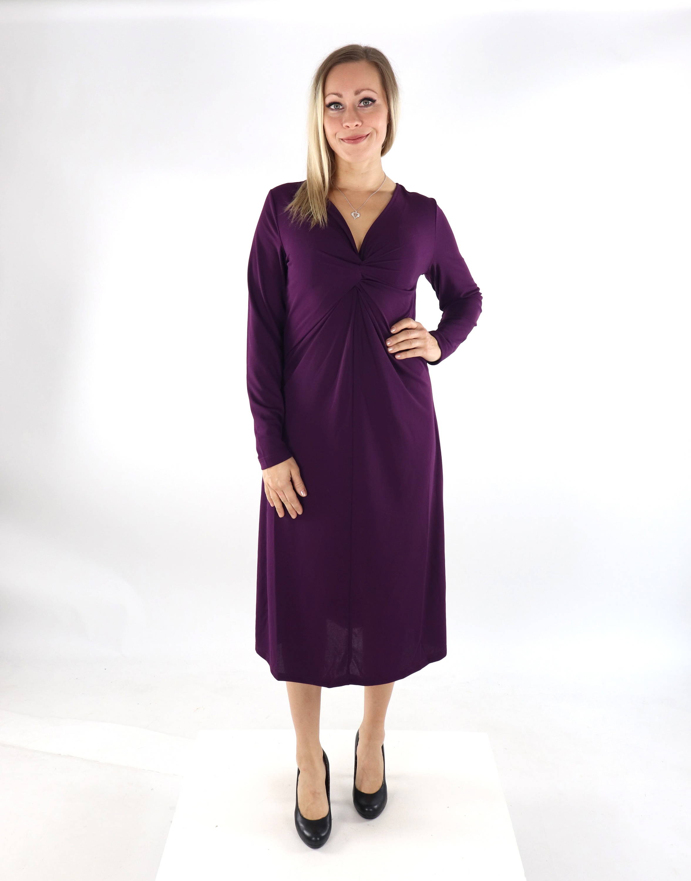 Vacker klänning med rynkig detalj upptill.