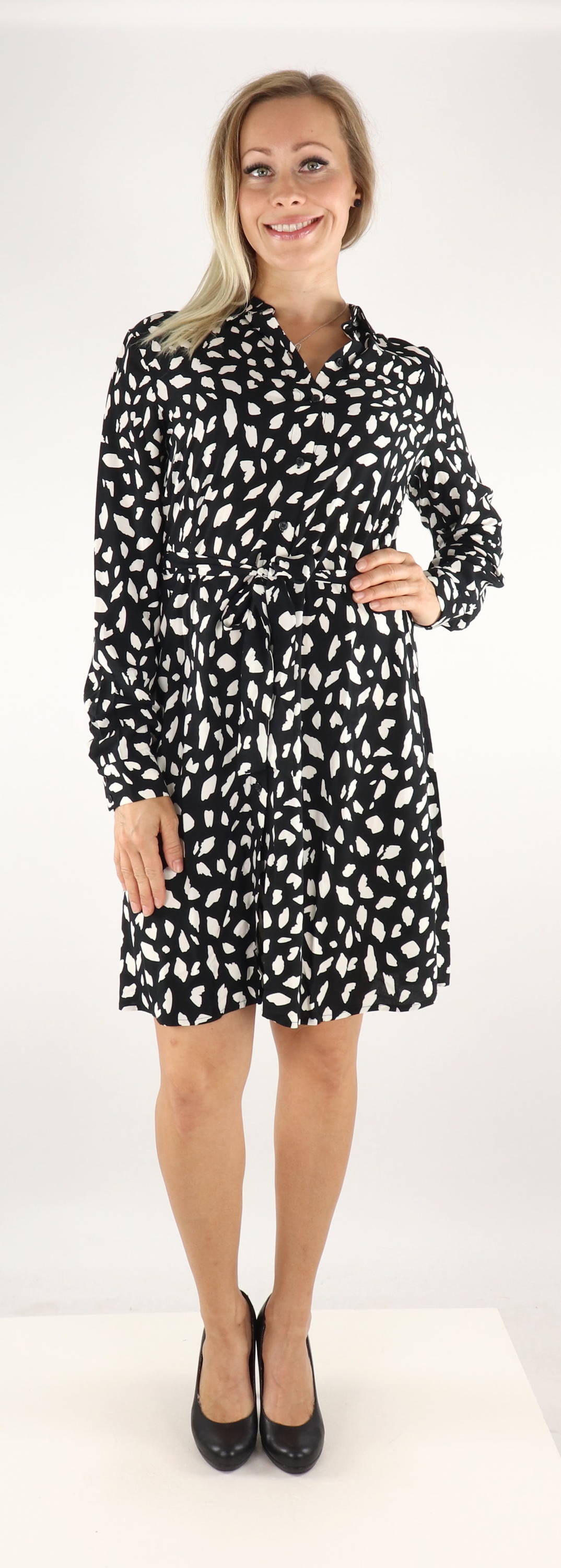 Lätt långärmad skjortklänning med knäppning och knytskärp